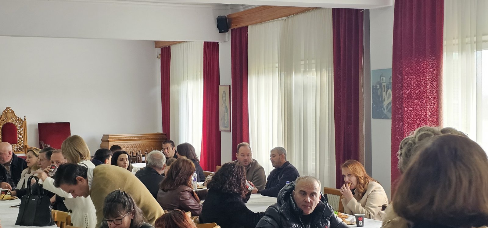 Μετά το πέρας της Θείας Λειτουργίας, ακολούθησε δεξίωση – catering στην επάνω αίθουσα του Ναού, όπου μέλη, συνάδελφοι και φίλοι του κλάδου είχαν την ευκαιρία να συναντηθούν σε μια ζεστή και φιλική ατμόσφαιρα, ανταλλάσσοντας ευχές και συζητώντας για τα ζητήματα του επαγγέλματος.
