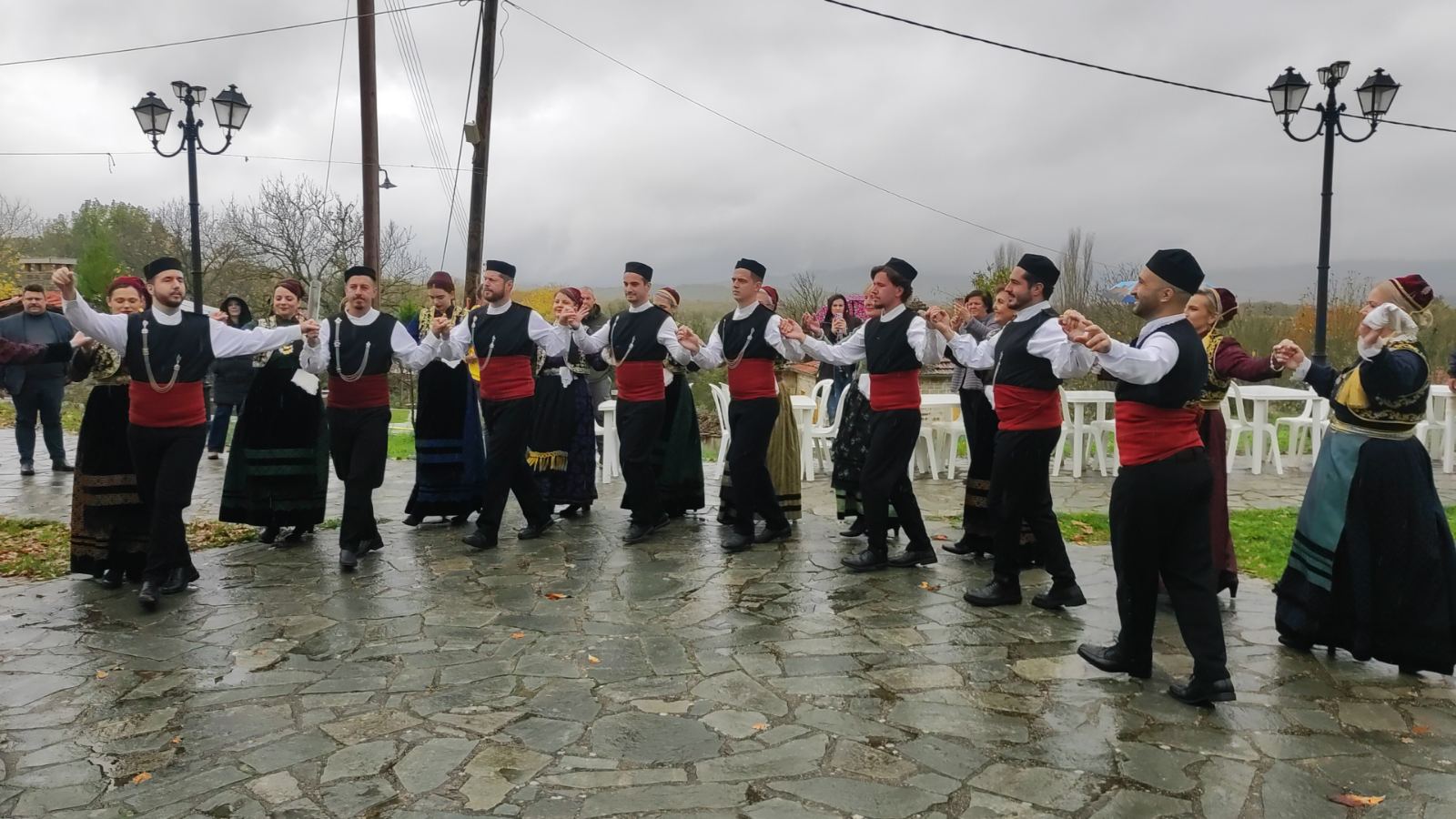 Το γλέντι άνοιξε με το χορευτικό τμήμα του Πολιτιστικού Συλλόγου “Οι Μακεδνοί”, που παρουσίασε παραδοσιακούς χορούς της Δυτικής Μακεδονίας, αποσπώντας το θερμό χειροκρότημα του κοινού.