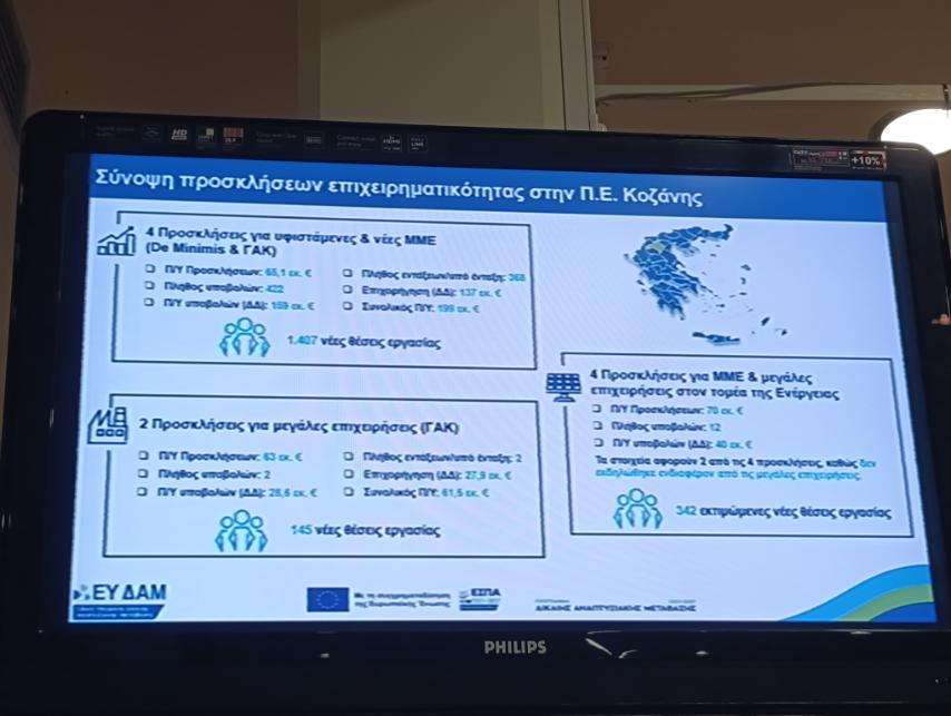 Στο πλαίσιο των δράσεων ενημέρωσης και παρακολούθησης του Προγράμματος Δίκαιης Αναπτυξιακής Μετάβασης (ΔΑΜ), πραγματοποιήθηκε το απόγευμα της Δευτέρας 10/11 στην αίθουσα συνεδριάσεων του Δημοτικού Συμβουλίου Κοζάνης (Κοβεντάρειο), εκδήλωση με στόχο τη διάγνωση θεμάτων, ζητημάτων και δυσκολιών που αντιμετωπίζουν οι επιχειρήσεις που έχουν ήδη ενταχθεί στα προγράμματα του ΔΑΜ, καθώς και συζήτηση γύρω από τρόπους επιτάχυνσης και απρόσκοπτης υλοποίησης των επενδυτικών τους σχεδίων. Στη συνάντηση συμμετείχαν εκπρόσωποι της Ειδικής Υπηρεσίας Δίκαιης Αναπτυξιακής Μετάβασης (ΕΥΔΑΜ), στελέχη της “ΜΕΤΑΒΑΣΗ Μ.Α.Ε.”, καθώς και επιχειρηματίες από διάφορους κλάδους της Δυτικής Μακεδονίας, οι οποίοι μετέφεραν την εμπειρία και τους προβληματισμούς τους από την πορεία των έργων και κατέθεσαν προτάσεις για τη βελτίωση των διαδικασιών.