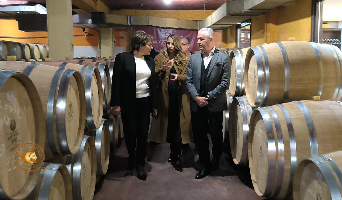 Στη συνέχεια, η κ. Σώκου, συνοδευόμενη από τον Δήμαρχο Αμυνταίου, Αντιδημάρχους και τον Πρόεδρο ΔΗΜ.Τ.Ο. Αμυνταίου της ΝΔ, ξεναγήθηκε στο Οινοποιείο της ΑΣΕΠΑ, όπου ενημερώθηκε για την τοπική οινική παραγωγή και τον στρατηγικό ρόλο του Ξινόμαυρου στην ανάπτυξη της περιοχής. Ακολούθως επισκέφθηκε το εργοστάσιο του Ξινού Νερού, έναν από τους σημαντικότερους αναπτυξιακούς πυλώνες του Δήμου, όπου την υποδέχθηκε ο Πρόεδρος της «Ξινό Νερό Μονομετοχική Α.Ε. ΟΤΑ» Χρήστος Θωμαΐδης. Κατά τη διάρκεια της επίσκεψης η κ. Σώκου ενημερώθηκε για τις δυνατότητες περαιτέρω αξιοποίησης και εξωστρέφειας του μοναδικού αυτού προϊόντος.