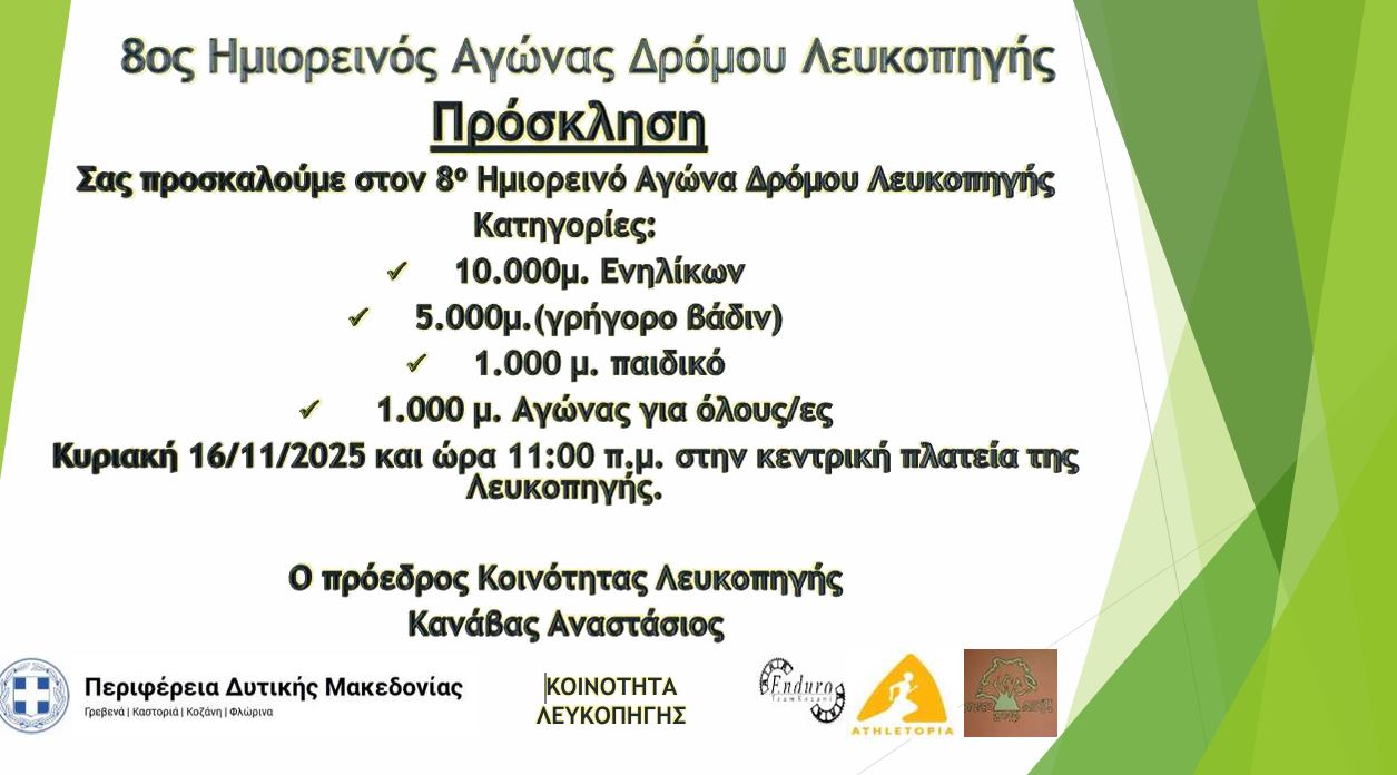 8ος Ημιορεινός Αγώνας δρόμου Λευκοπηγής, την Κυριακή 16/11.