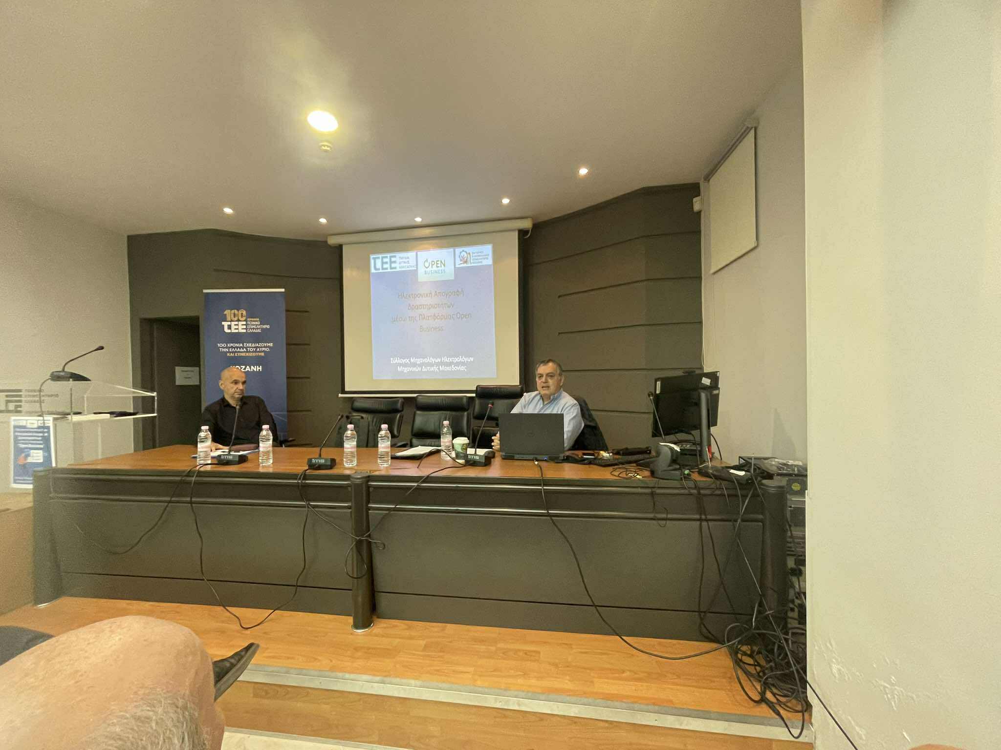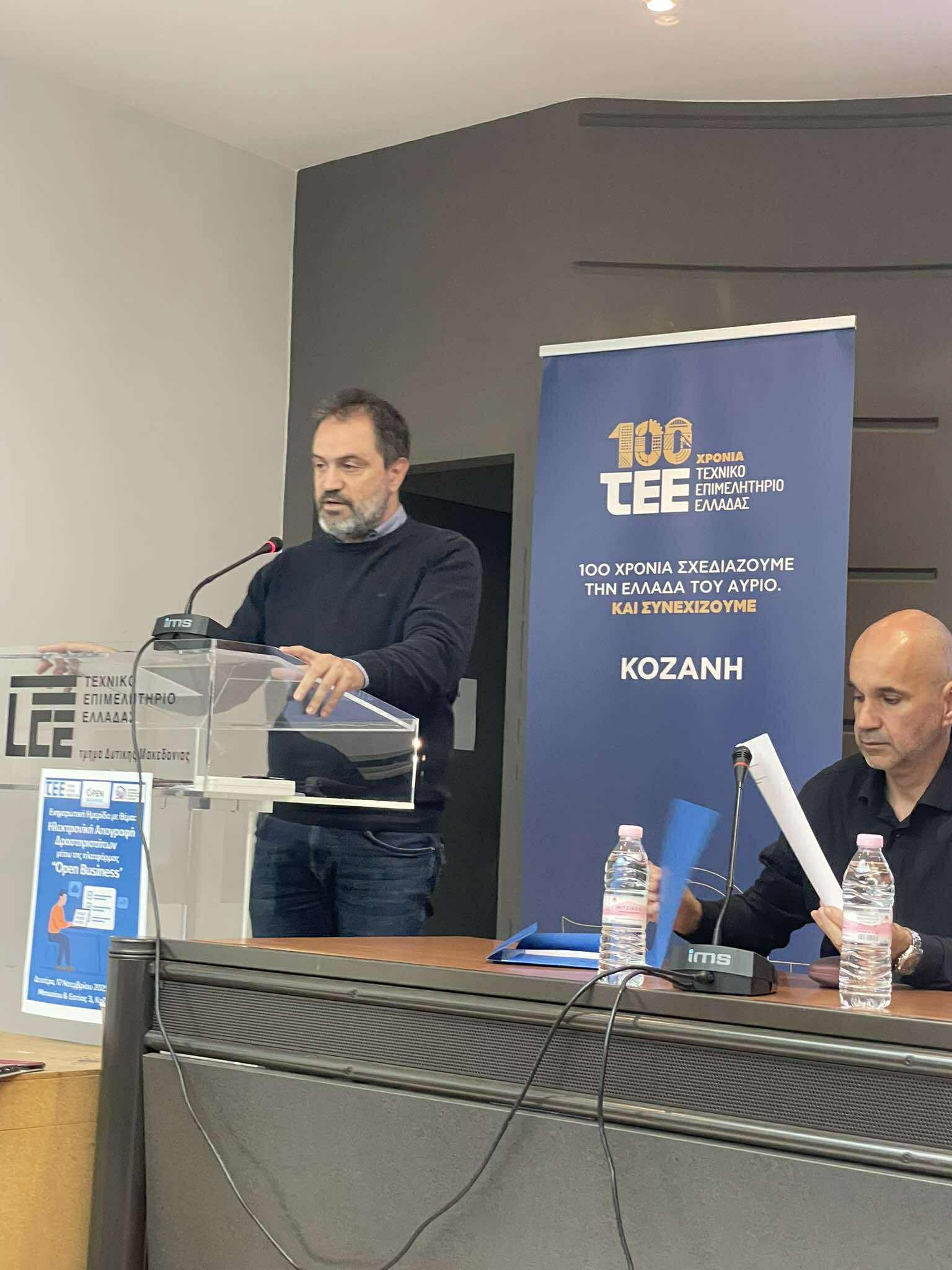 Πραγματοποιήθηκε το απόγευμα της Δευτέρας 17 Νοεμβρίου 2025, στο κτίριο του ΤΕΕ/Τμήματος Δυτικής Μακεδονίας στην Κοζάνη, η ενημερωτική ημερίδα με θέμα «Ηλεκτρονική Απογραφή Δραστηριοτήτων μέσω της πλατφόρμας Open Business», την οποία συνδιοργάνωσαν το Επιμελητήριο Κοζάνης και το ΤΕΕ/Τμήμα Δυτικής Μακεδονίας.