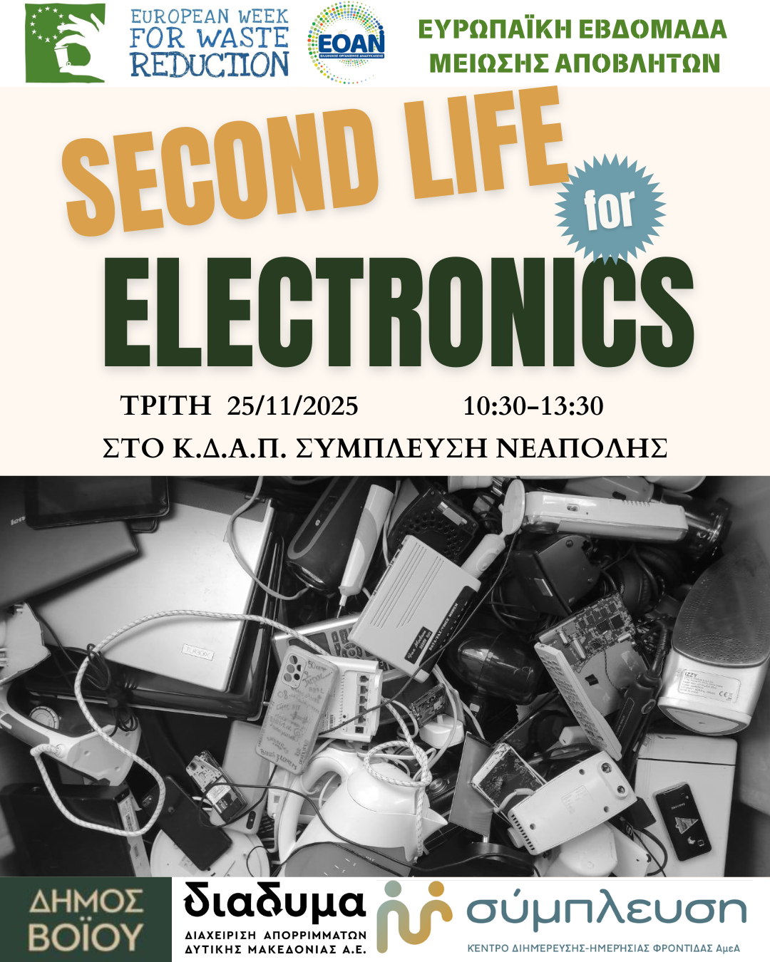 Στο πλαίσιο της Ευρωπαϊκής Εβδομάδας Μείωσης Αποβλήτων, η ΔΙΑΔΥΜΑ, σε συνεργασία με τον Δήμο Βοΐου και τα ΚΔΑΠ-ΚΔΗΦ ΑμεΑ «Σύμπλευση», διοργανώνει την Τρίτη 25 Νοεμβρίου 2025 και ώρες 10:30-13:30, ανοιχτή εκδήλωση στον χώρο του Κ.Δ.Α.Π. ΑμεΑ «Σύμπλευση» Νεάπολης.