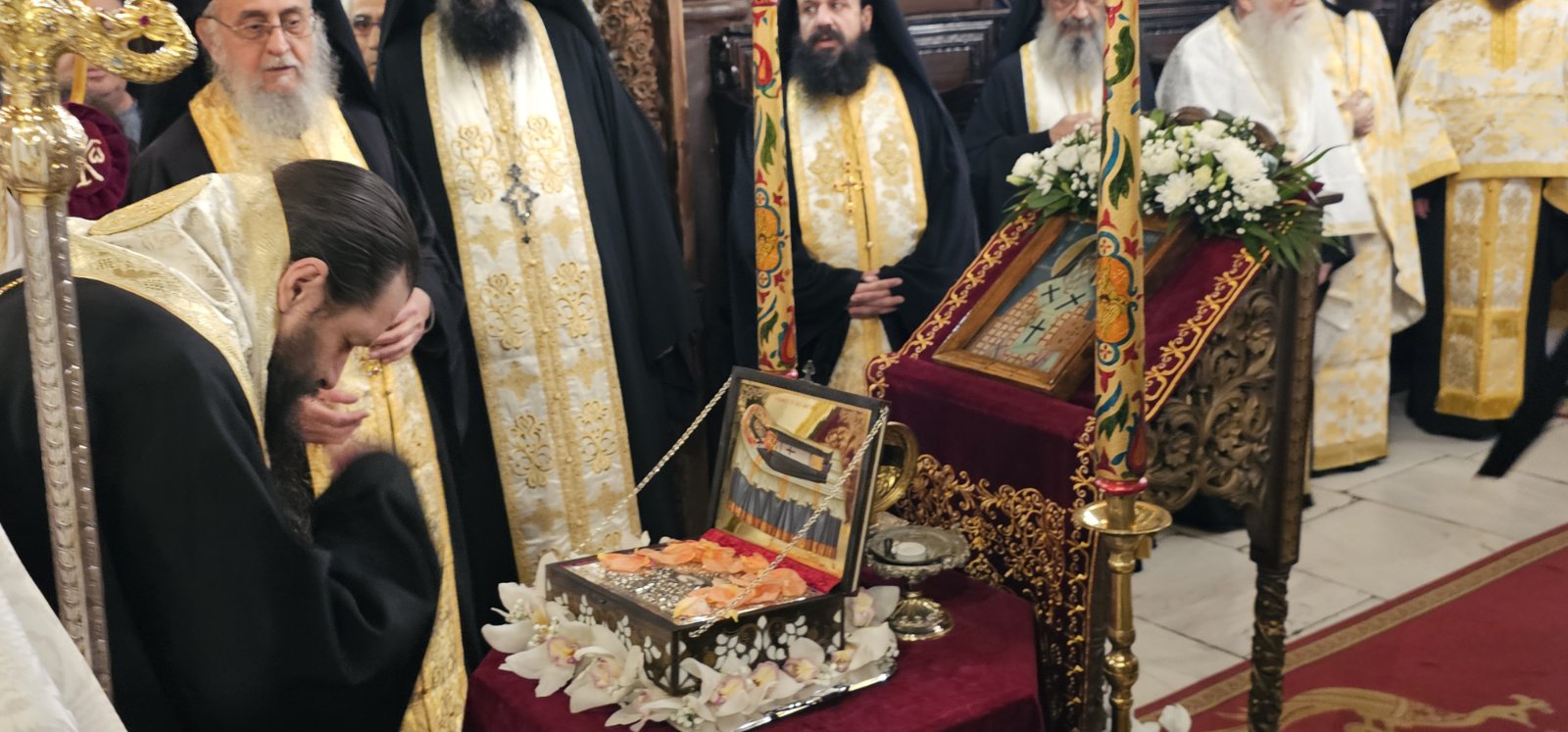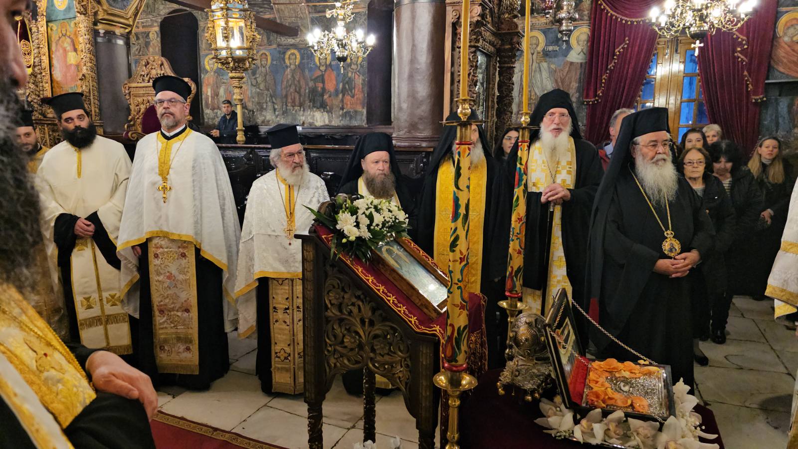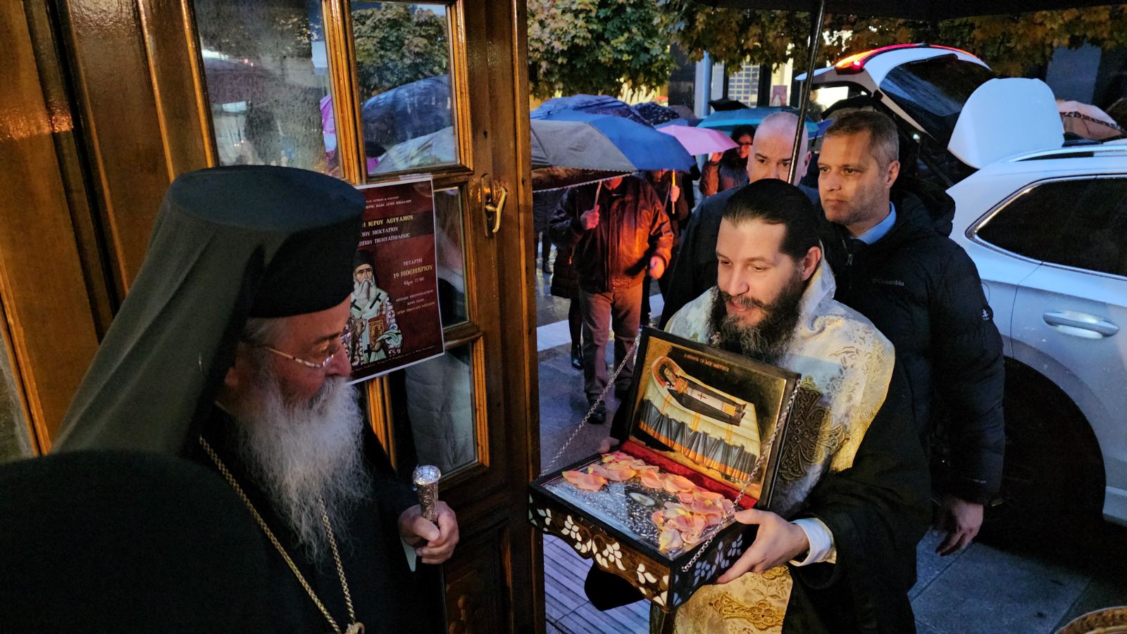 Στις 5.00 μ.μ. της Τετάρτης 19/11 πραγματοποιήθηκε η υποδοχή του Ιερού Λειψάνου του Αγίου Νεκταρίου από τον Σεβασμιώτατο Μητροπολίτη Σερβίων & Κοζάνης κ.κ. Παύλο. Ακολούθησε Εσπερινός μετ’ αρτοκλασίας και στη συνέχεια τελέστηκε Ιερά Παράκληση στον Άγιο Νεκτάριο μέσα σε κλίμα βαθιάς κατάνυξης.