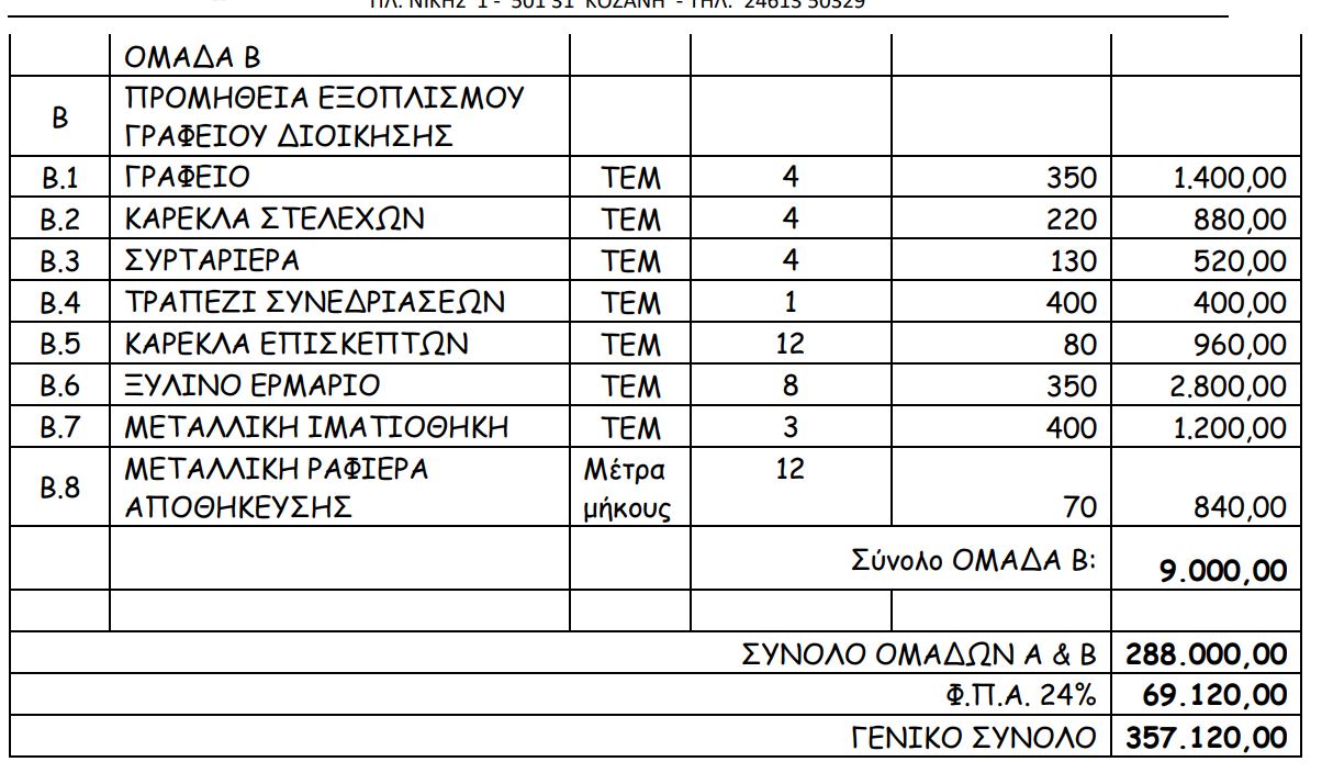 II. ΟΜΑΔΑ Β: ΠΡΟΜΗΘΕΙΑ ΕΞΟΠΛΙΣΜΟΥ ΓΡΑΦΕΙΟΥ ΔΙΟΙΚΗΣΗΣ (Έπιπλα, επιπλώσεις, οικιακές συσκευές και προϊόντα καθαρισμού)