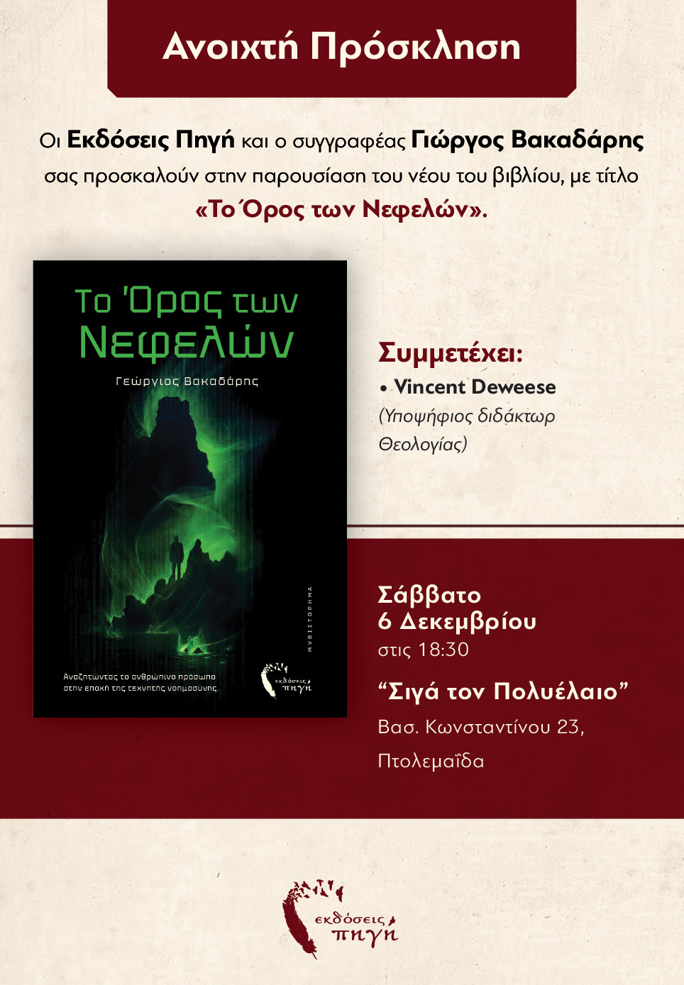Σας περιμένω στην βιβλιοπαρουσίαση του πρώτου μου βιβλίου “Το Όρος των Νεφελών” στην Πτολεμαϊδα.