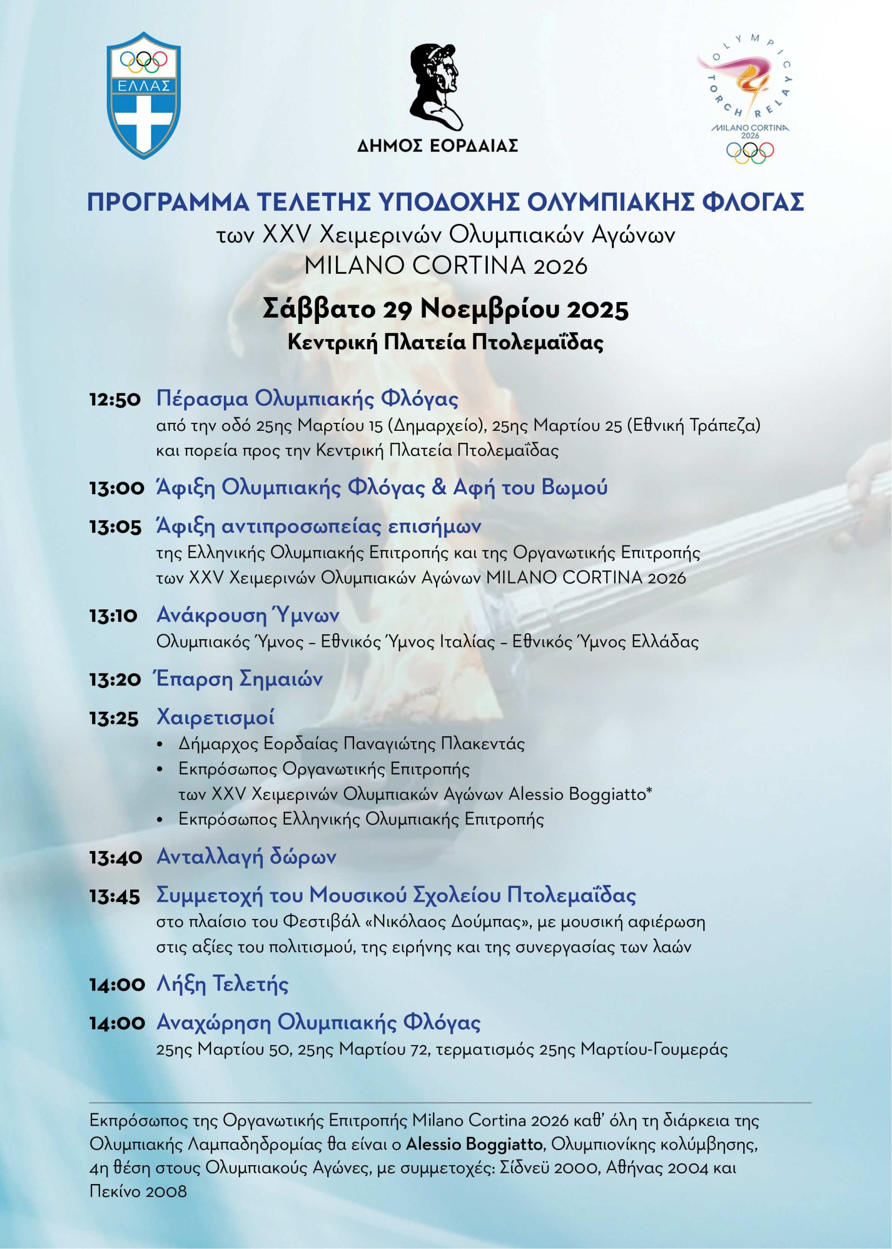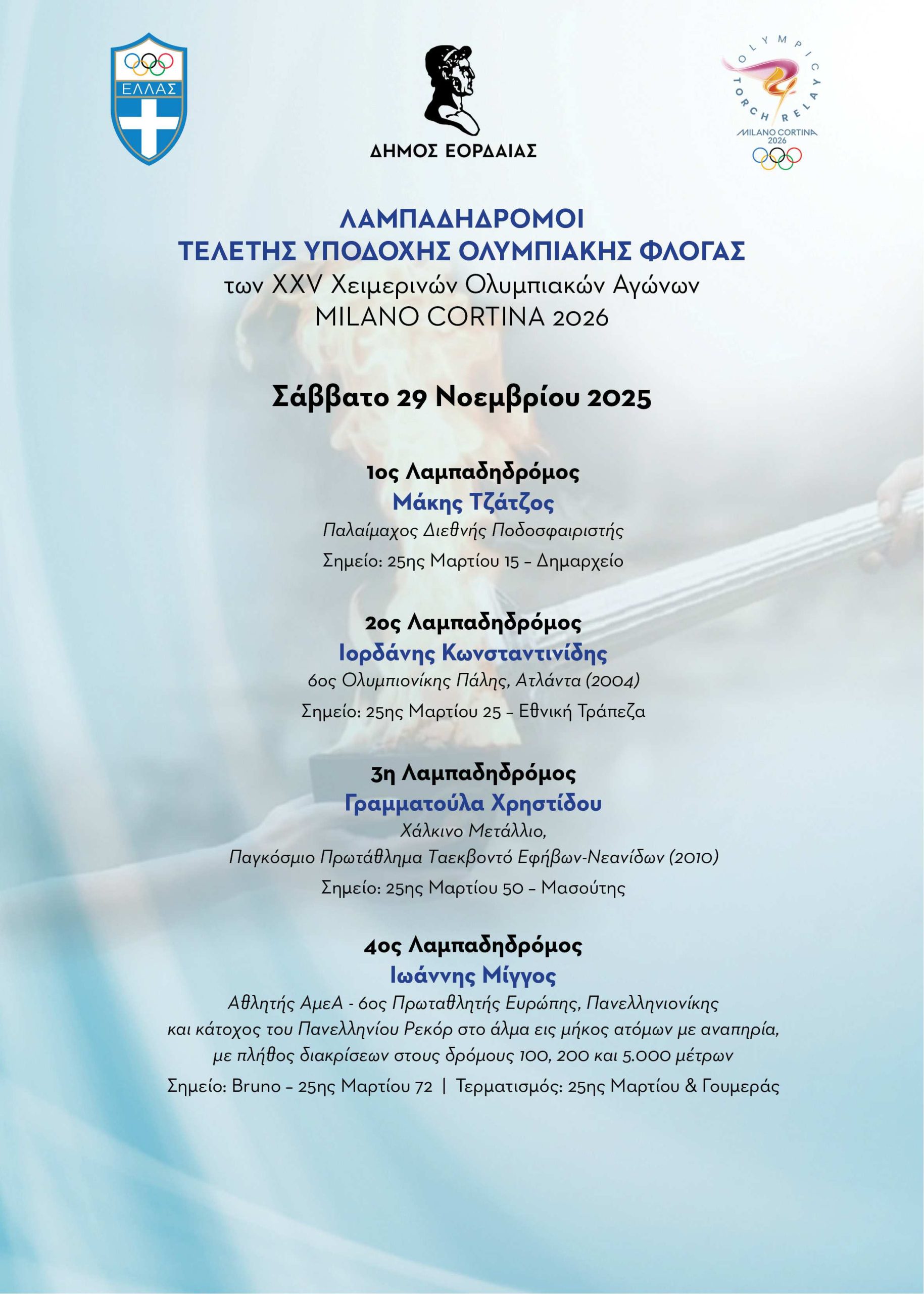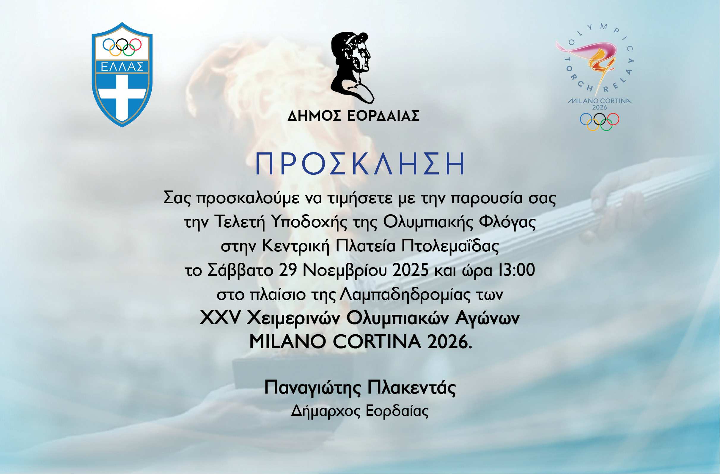 Η Πτολεμαΐδα γίνεται πόλη–σταθμός της Ολυμπιακής Λαμπαδηδρομίας MILANO CORTINA 2026.
