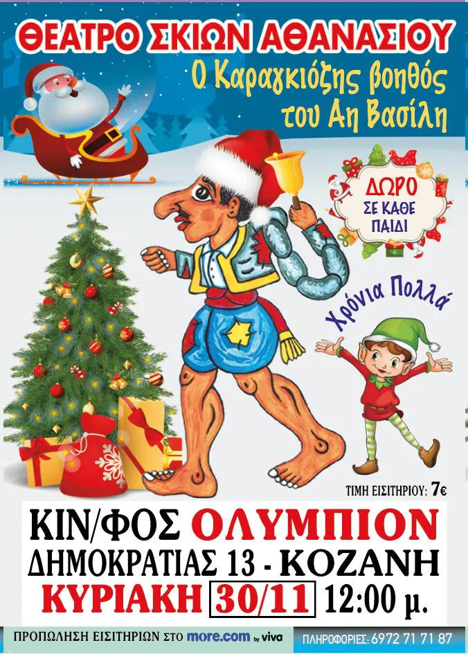 Το Θέατρο Σκιών Αθανασίου παρουσιάζει την παράσταση Καραγκιόζη ” Ο ΚΑΡΑΓΚΙΟΖΗΣ ΒΟΗΘΟΣ ΤΟΥ ΑΪ – ΒΑΣΙΛΗ”