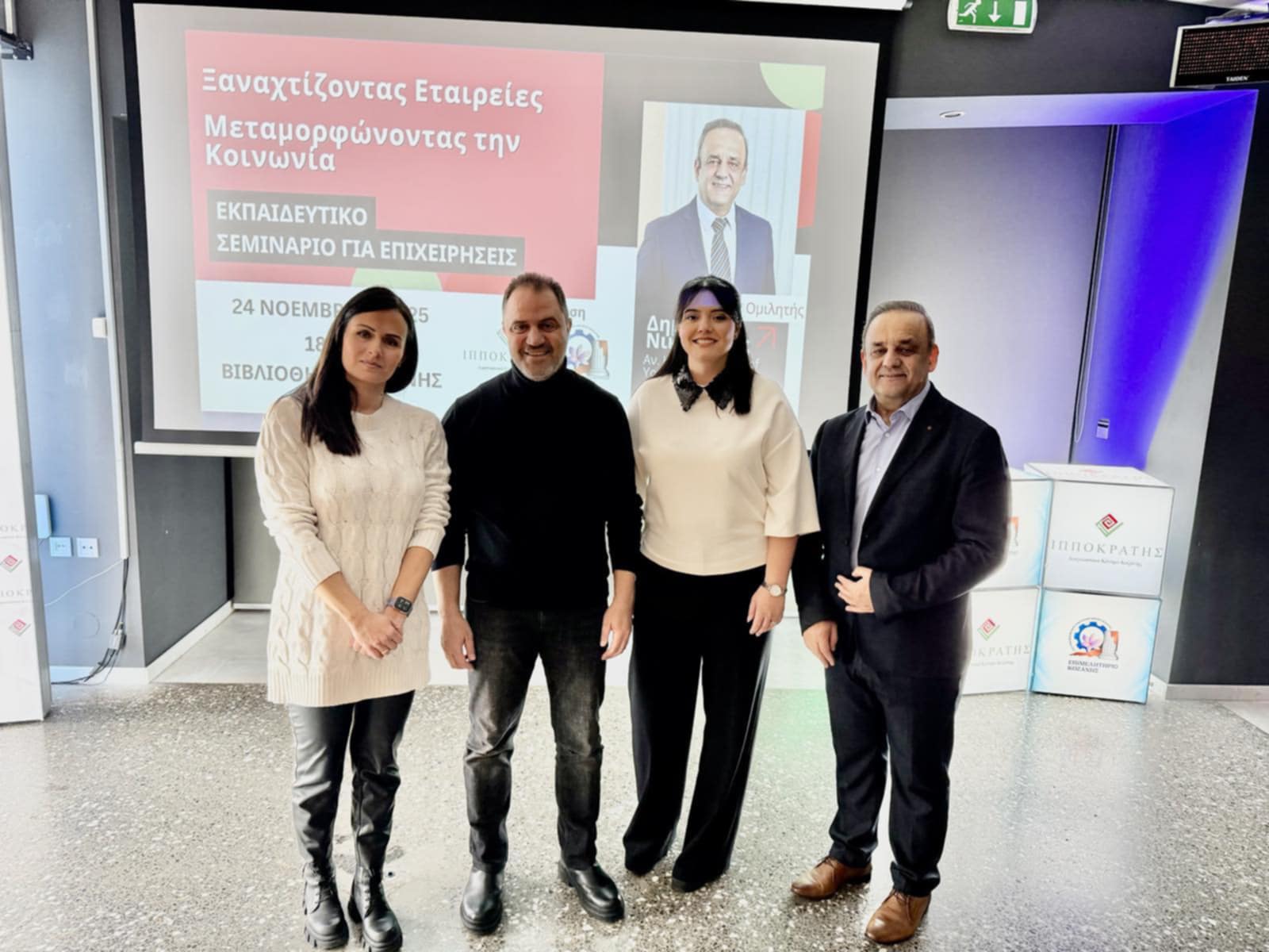 Ομιλητής της εκδήλωσης ήταν ο Dr. Δημήτριος Β. Νικολαΐδης, CEO της Embryolab Fertility Clinic, Αναπληρωτής Καθηγητής του Πανεπιστημίου York (Europe Campus) και συνεργάτης στο TIAS Business School του Tilburg University, ο οποίος ανέλυσε σύγχρονες μεθοδολογίες και εργαλεία διοίκησης προσωπικού.