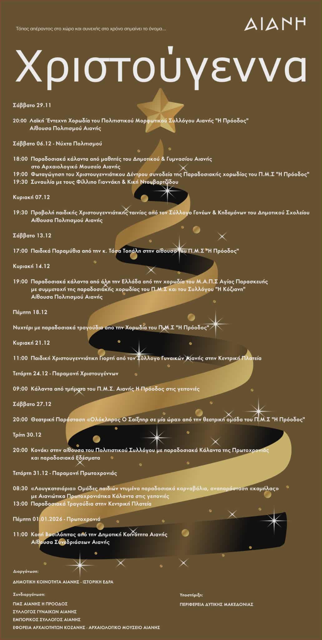 Χριστούγεννα στην Αιανή & Νύχτα Πολιτισμού το Σάββατο 6 Δεκεμβρίου