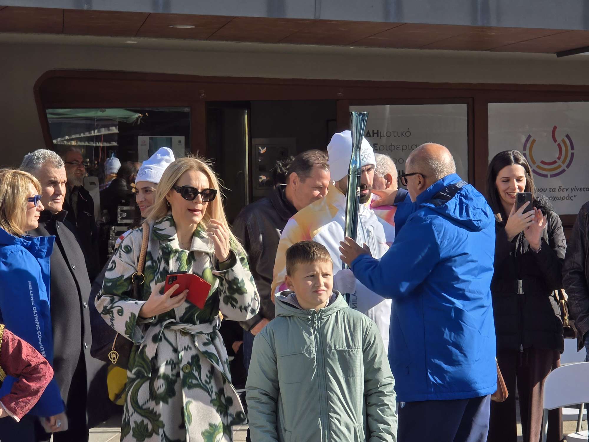 Η Φλόγα διέσχισε κεντρικούς δρόμους της πόλης, περνώντας από τις οδούς Α. Παπανδρέου και Ι. Τράντα, για να καταλήξει στην κεντρική πλατεία Νίκης, όπου πλήθος κόσμου, μικροί και μεγάλοι, την υποδέχθηκε με ενθουσιασμό και χειροκροτήματα. Εκεί πραγματοποιήθηκε η επίσημη τελετή αφής στον ειδικό βωμό, αποπνέοντας παλμό, συγκίνηση και περηφάνια.