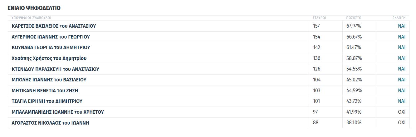 Οι ψήφοι που έλαβαν
