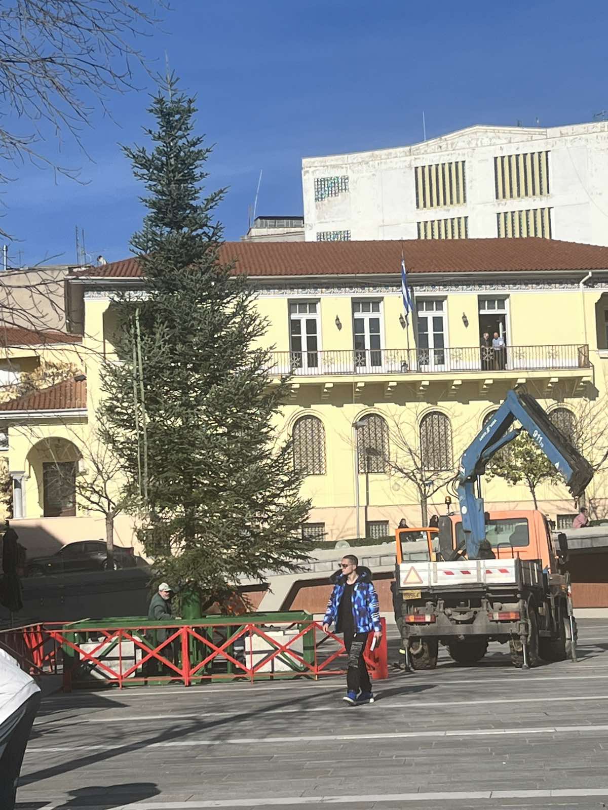 Μπήκε το Χριστουγεννιάτικο δέντρο στην κεντρική πλατεία Κοζάνης. Θα ακολουθήσει ο στολισμός