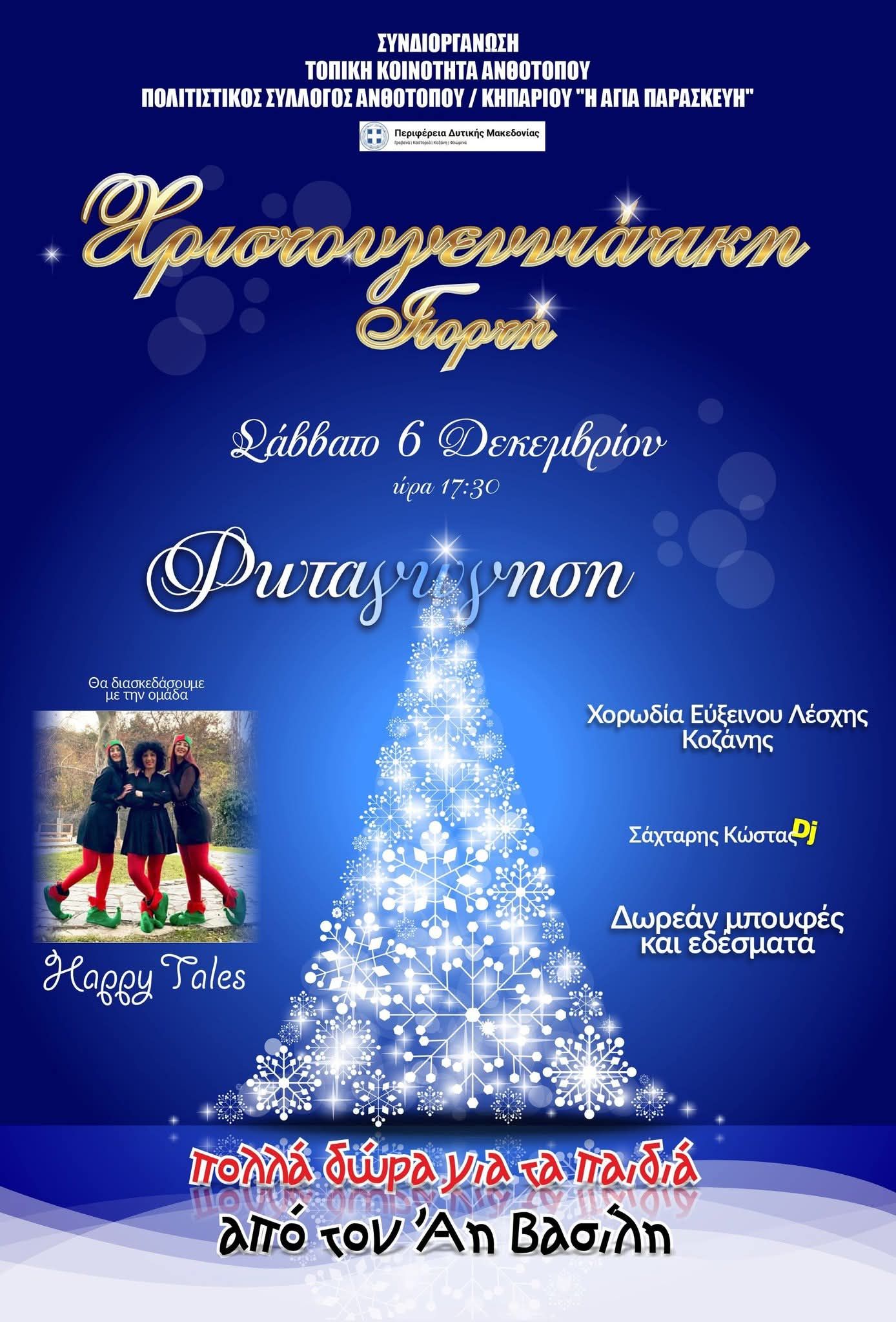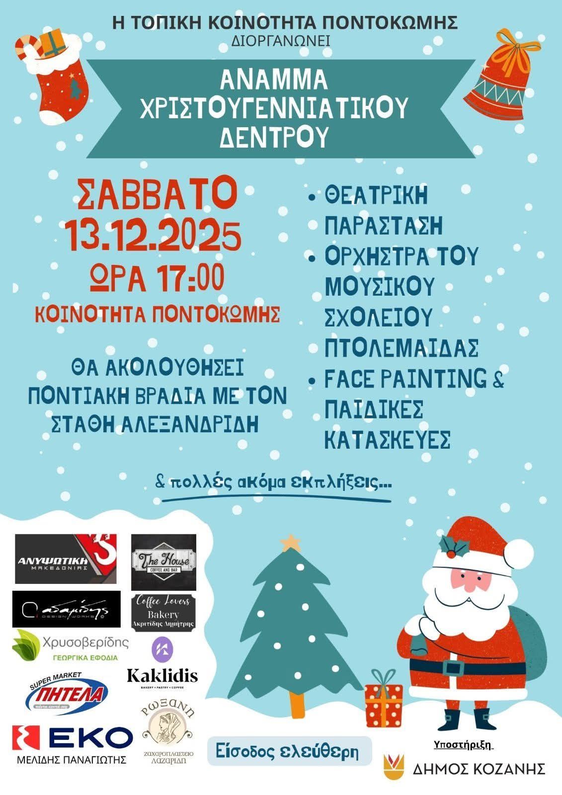 Το kozan.gr συγκέντρωσε όλες τις ημερομηνίες και τις αφίσες των χριστουγεννιάτικων εκδηλώσεων στις Κοινότητες του Δήμου Κοζάνης, ώστε να μπορείτε εύκολα και γρήγορα να δείτε πού και πότε φωταγωγείται το δέντρο ή πραγματοποιείται κάποια γιορτινή δράση.