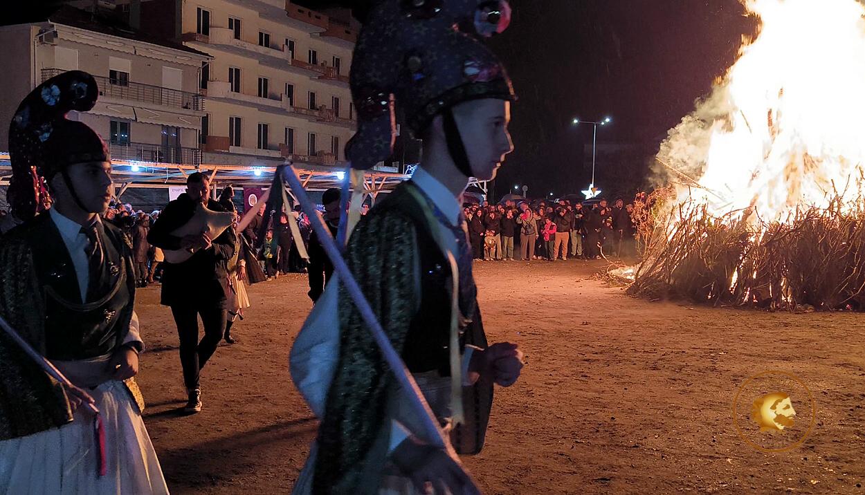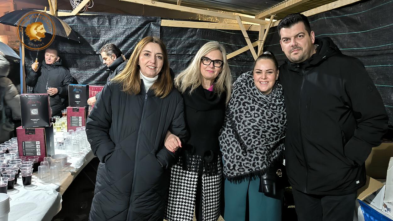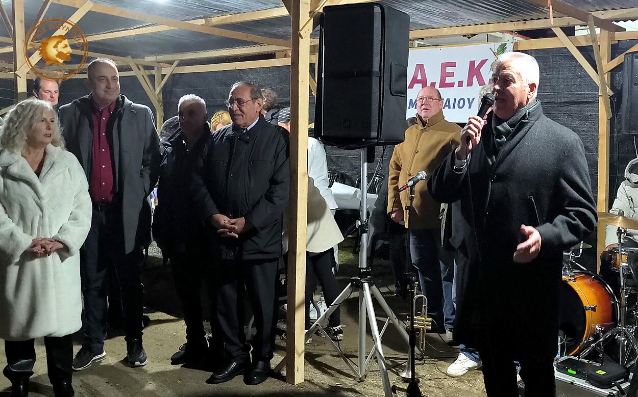 Οι παρευρισκόμενοι απόλαυσαν άφθονο τοπικό κρασί, ζεστή φασολάδα, λουκουμάδες και παραδοσιακά εδέσματα που προσφέρθηκαν δωρεάν, δημιουργώντας μια ατμόσφαιρα φιλοξενίας και γιορτής. Η βραδιά ζωντάνεψε ακόμη περισσότερο με τους ήχους των χάλκινων πνευστών, που ώθησαν μικρούς και μεγάλους να χορέψουν και να γλεντήσουν με την ψυχή τους.