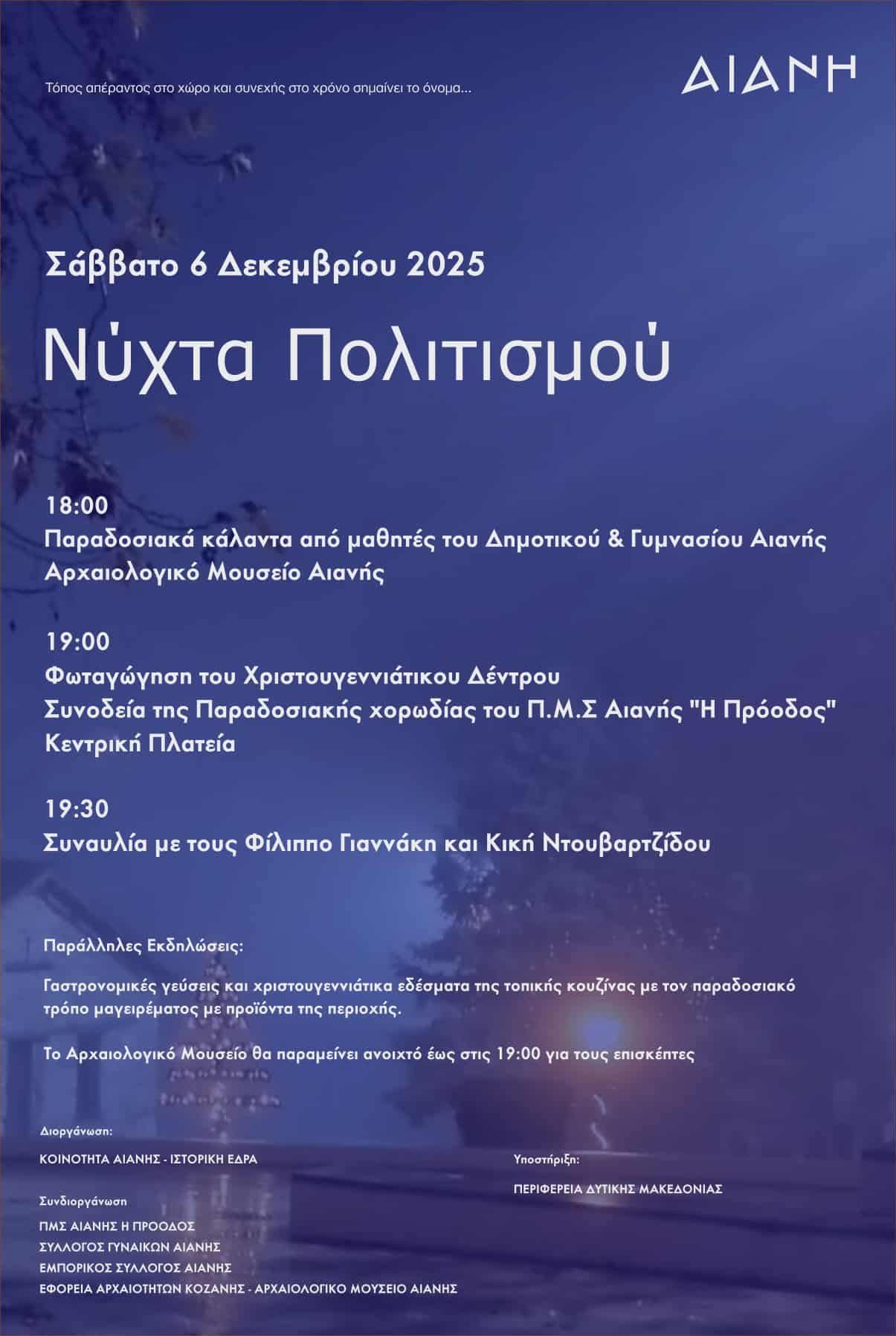 🌲🌲Το ραντεβού μας, στις 18:00 στο Αρχαιολογικό Μουσείο με παραδοσιακά κάλαντα από μαθητές του Δημοτικού σχολείου και του Γυμνασίου Αιανής.