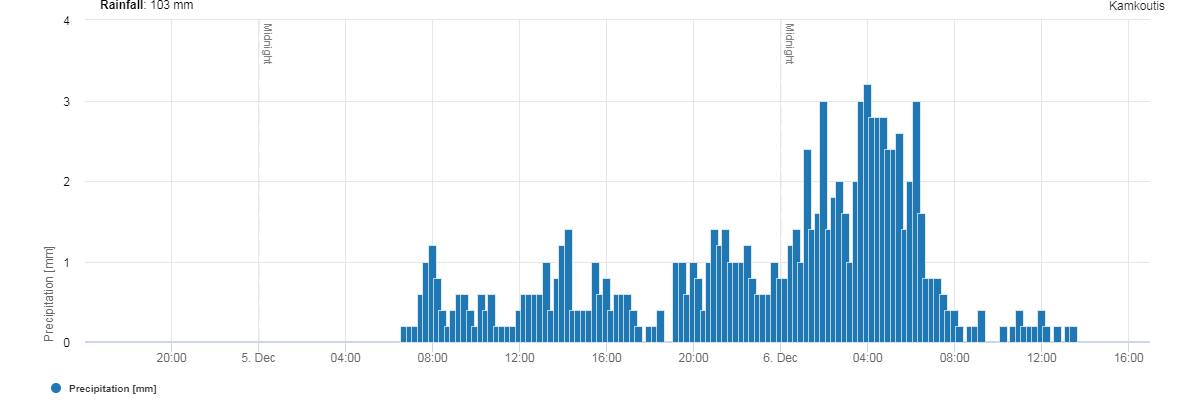 Στο Βελβεντό το ύψος βροχής ανήλθε σήμερα στα 103 χιλιοστά δηλαδή έπεσαν 103 τόνοι νερού στο στρέμα. Στο Καταφύγι κατ’ εκτίμηση περίπου 200 χιλ, δηλαδή 200 τόνοι νερού στο στρέμμα.