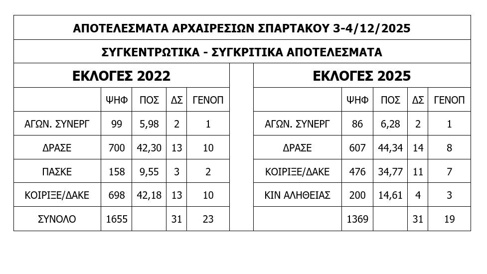 Χαιρετίζουμε τους συναδέλφους που συμμετείχαν μαζικά στις αρχαιρεσίες του Σπάρτακου. Χαιρετίζουμε ιδιαίτερα τους εργαζόμενους που κόντρα στους εκβιασμούς, τα ψεύτικα διλλήματα, τα ρουσφέτια, την τρομοκρατία κ.α., άντεξαν την πίεση και έφτασαν στην κάλπη με ψηλά το κεφάλι στηρίζοντας το ψηφοδέλτιο της Αγωνιστικής Συνεργασίας.