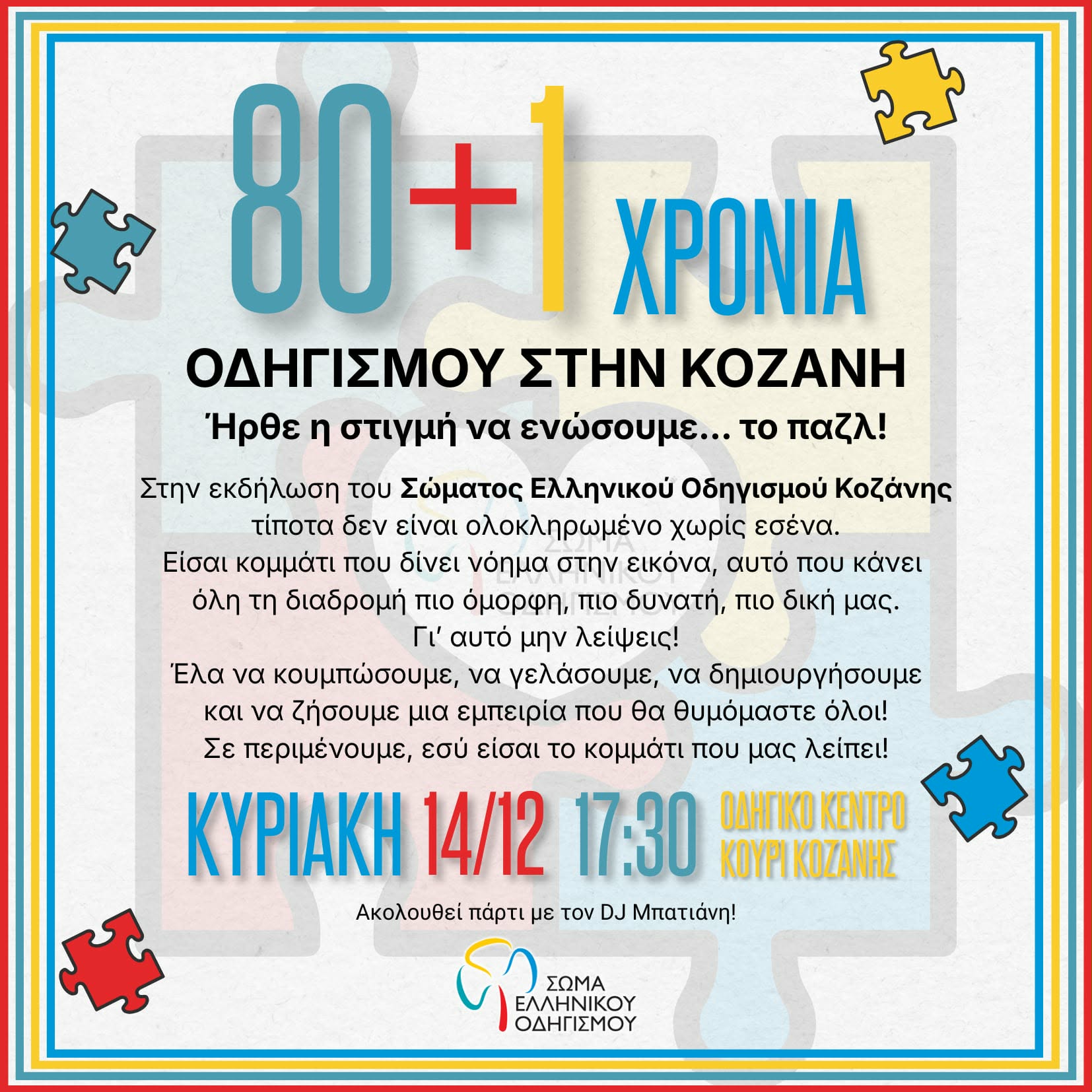 Φέτος, το Τοπικό Τμήμα Οδηγισμού Κοζάνης γιορτάζει 80 χρόνια Οδηγισμού και σε θέλει ξανά κοντά του!