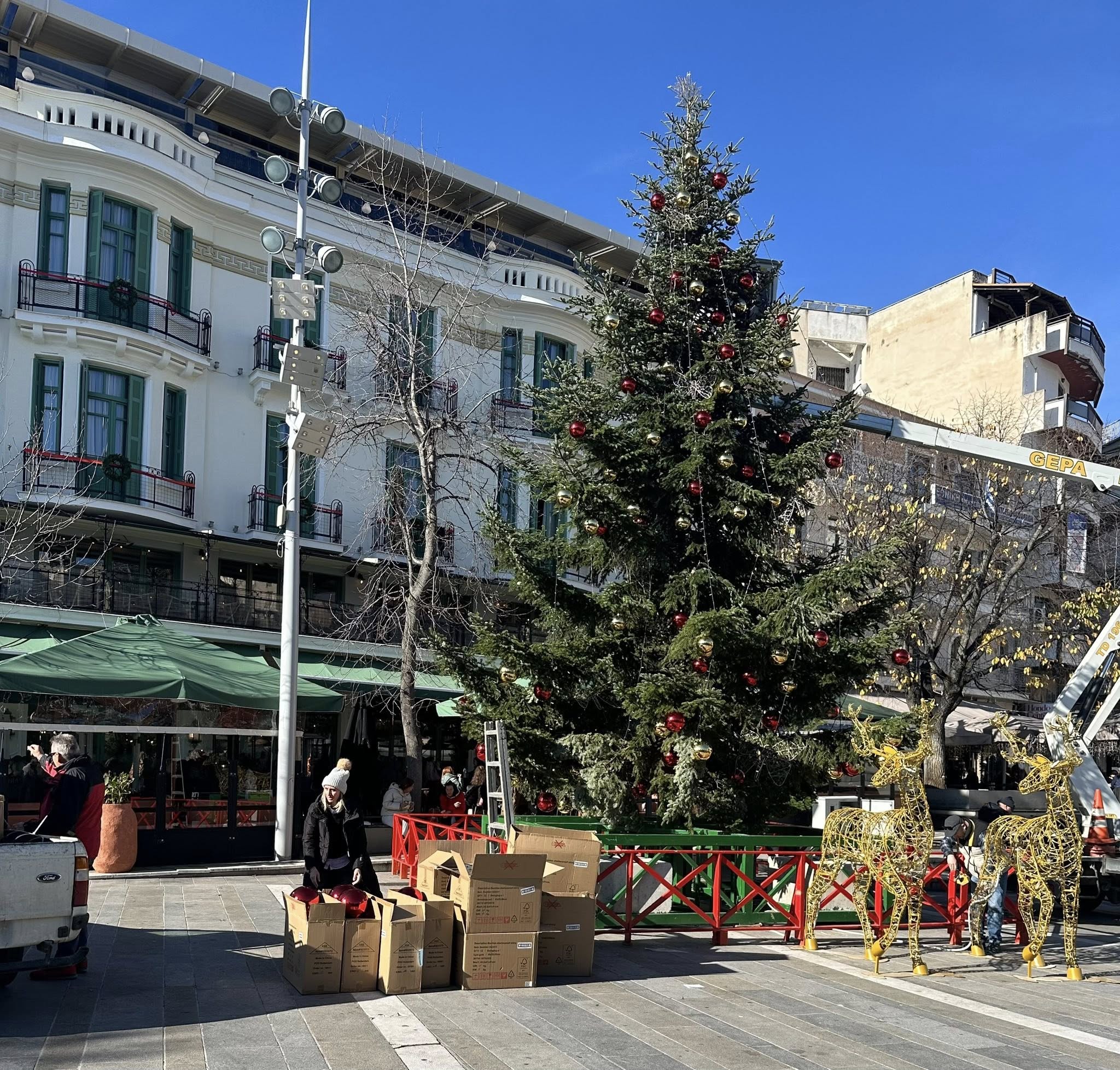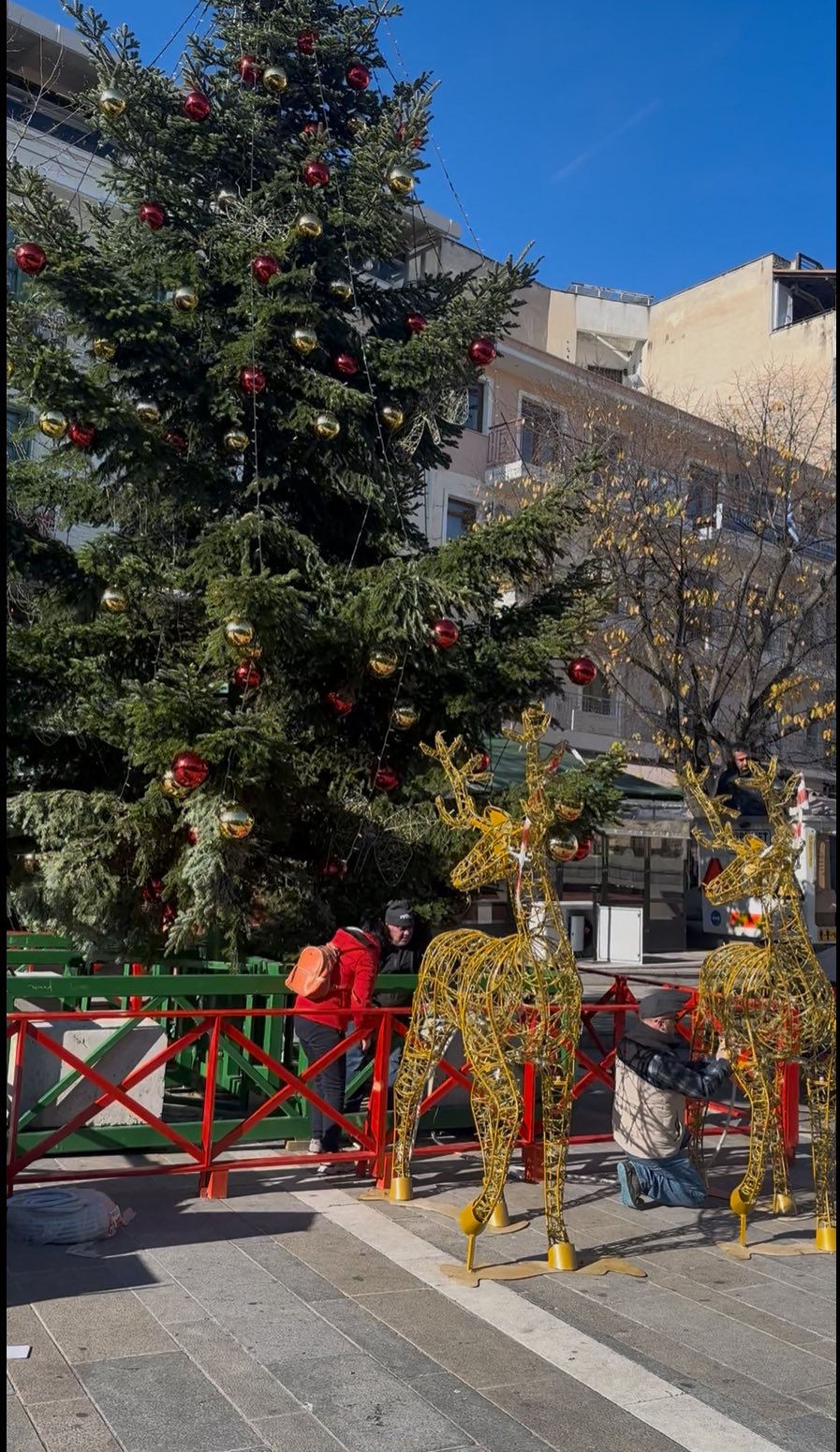 Στολίστηκε το Χριστουγεννιάτικο δέντρο, στην κεντρική πλατεία Κοζάνης, λίγο πριν τη φωταγώγησή του το βράδυ της Τρίτης 9/12.