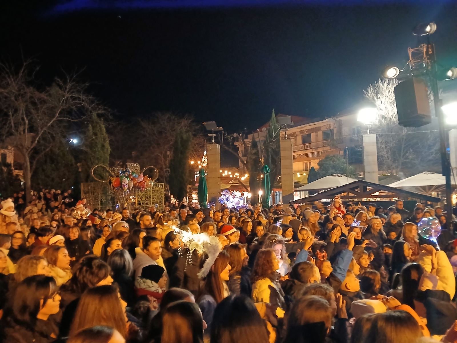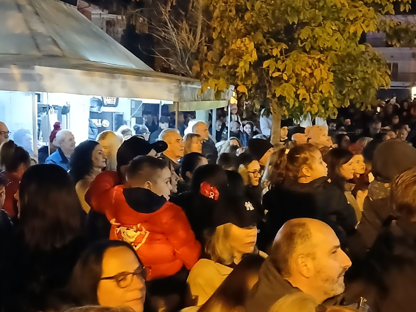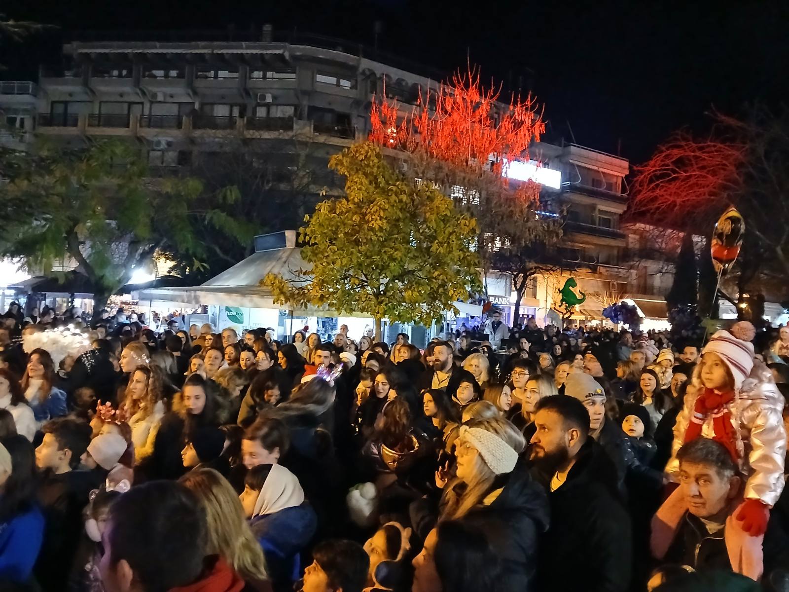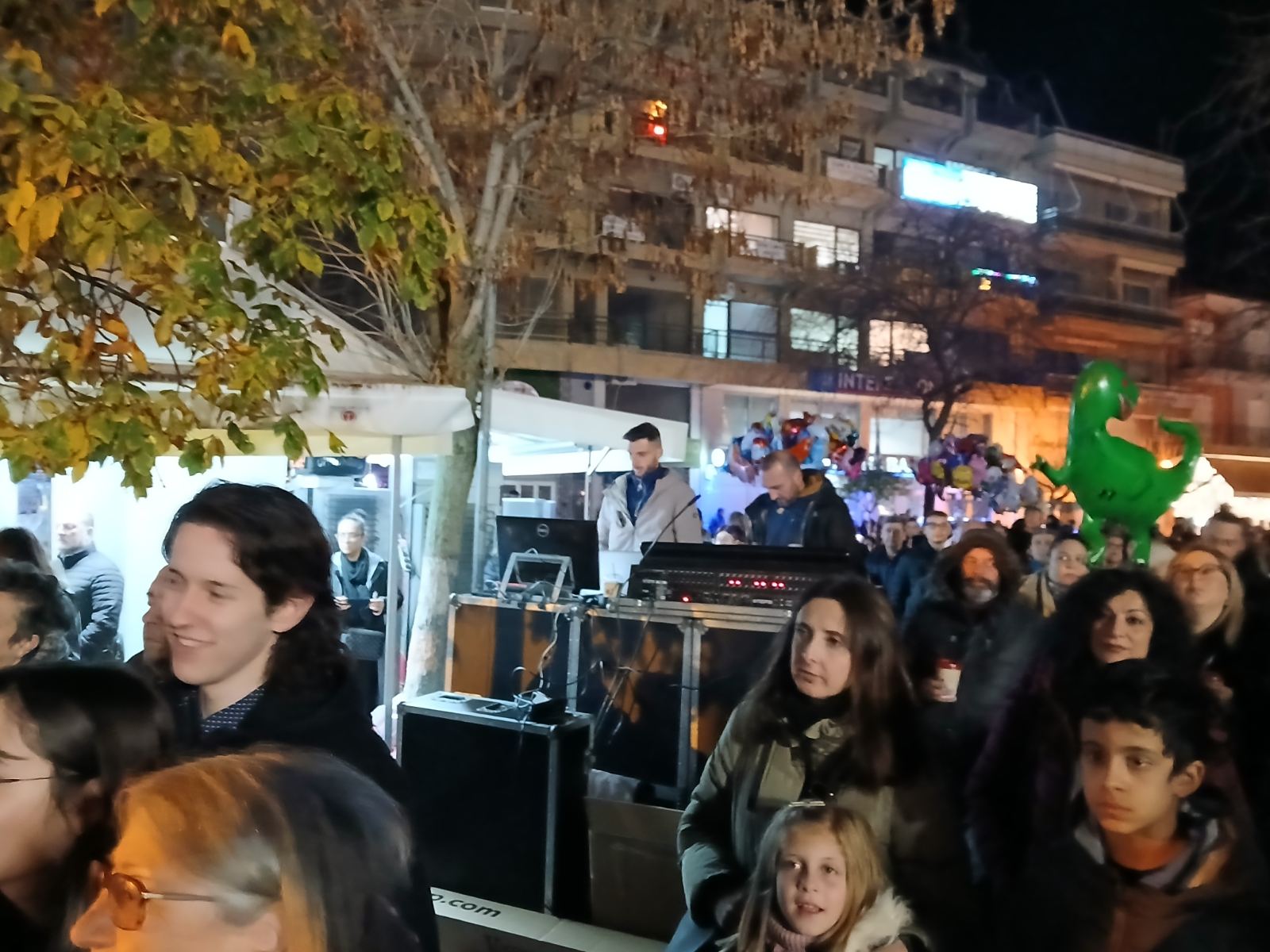 Από νωρίς το απόγευμα, πλήθος κόσμου κατέκλυσε την πλατεία, ενώ οι μικροί φίλοι της πόλης είχαν την τιμητική τους από τις 18:00, με την ομάδα διασκεδαστών «Ανεμοσκορπίσματα» να χαρίζει χαμόγελα, παιχνίδι και ζεστό οικογενειακό κλίμα, προετοιμάζοντας με τον καλύτερο τρόπο το σκηνικό της μεγάλης βραδιάς.