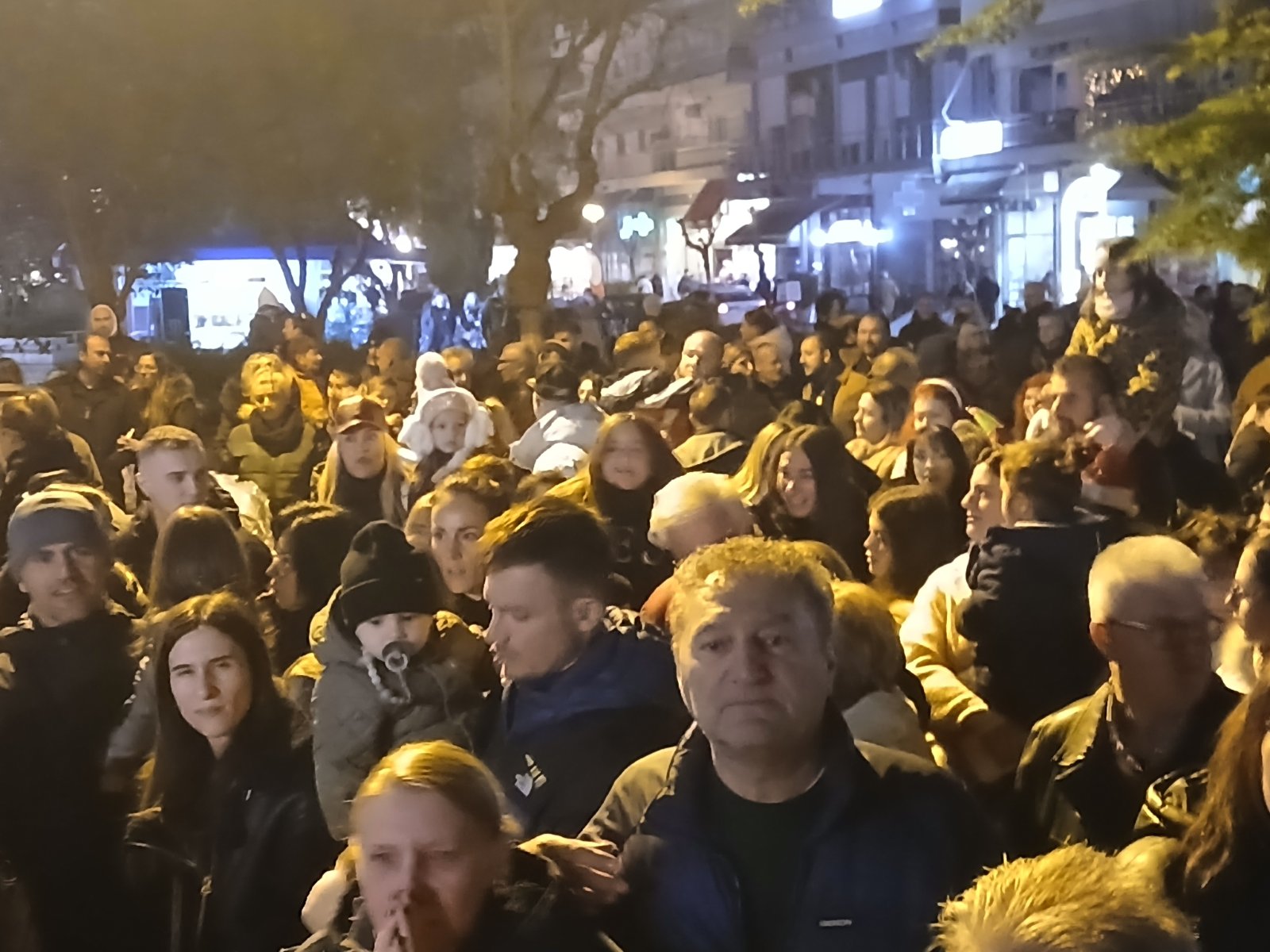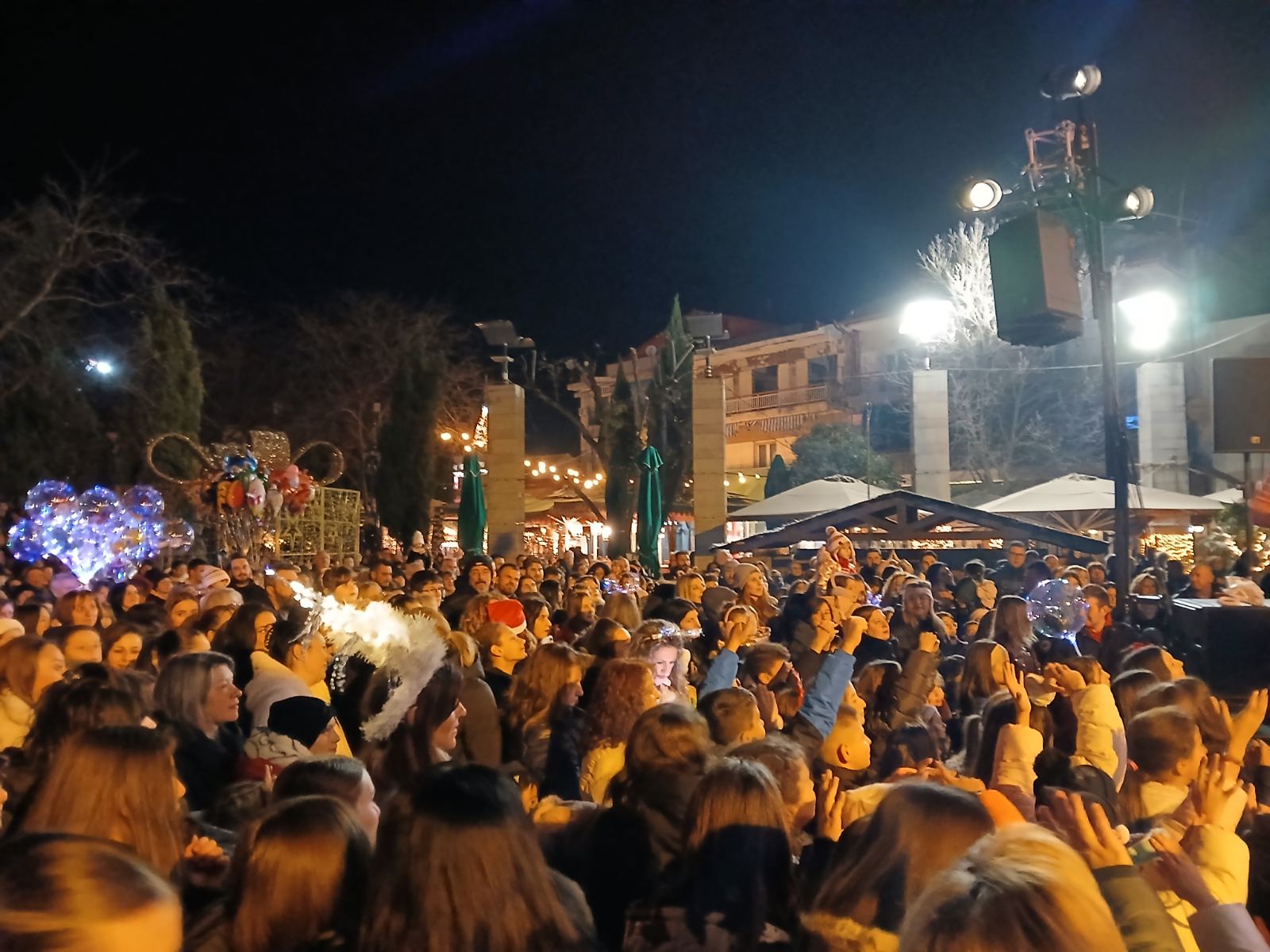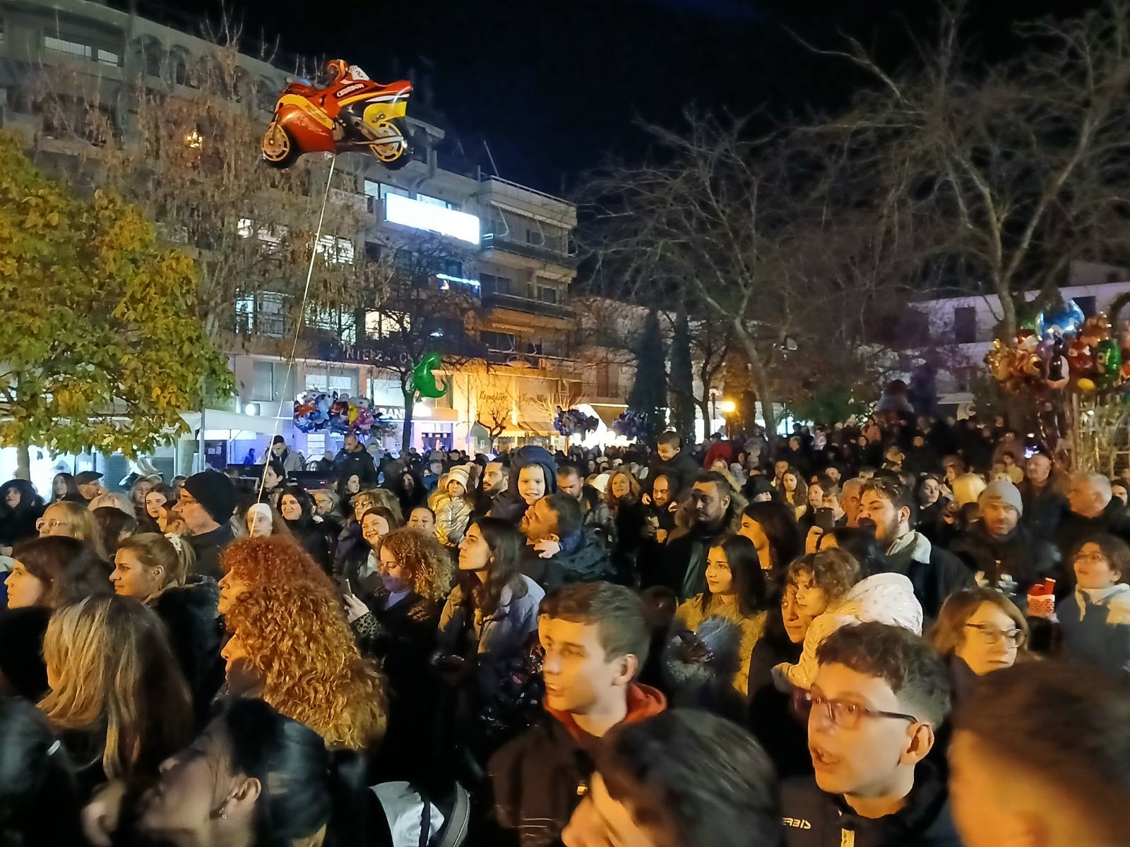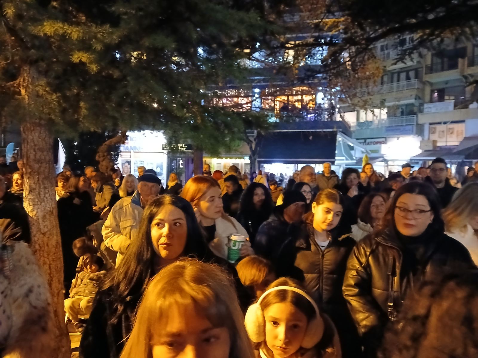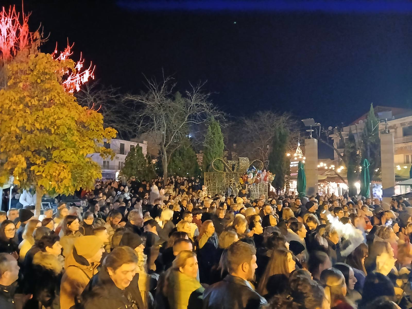 Από νωρίς το απόγευμα, πλήθος κόσμου κατέκλυσε την πλατεία, ενώ οι μικροί φίλοι της πόλης είχαν την τιμητική τους από τις 18:00, με την ομάδα διασκεδαστών «Ανεμοσκορπίσματα» να χαρίζει χαμόγελα, παιχνίδι και ζεστό οικογενειακό κλίμα, προετοιμάζοντας με τον καλύτερο τρόπο το σκηνικό της μεγάλης βραδιάς.