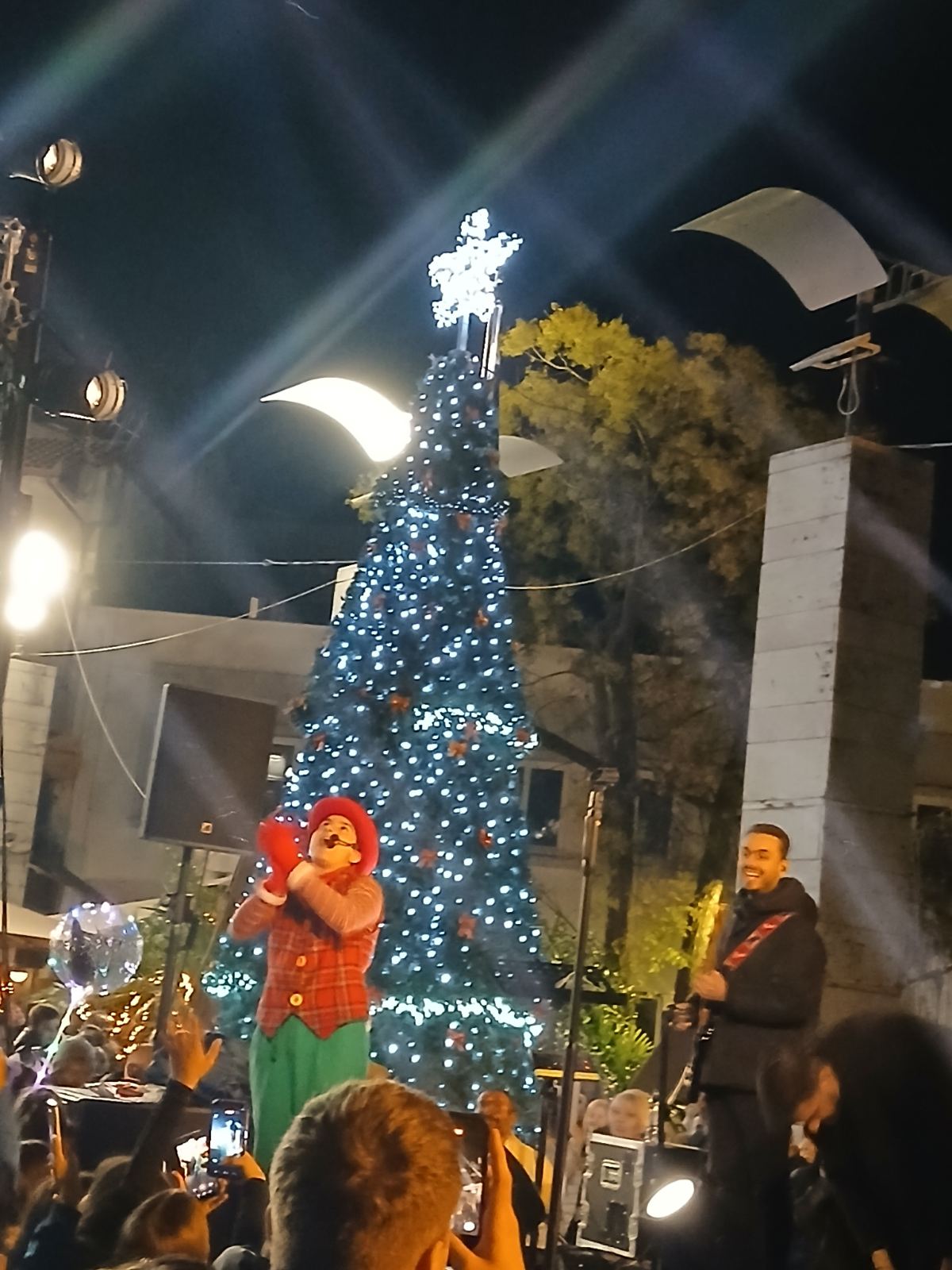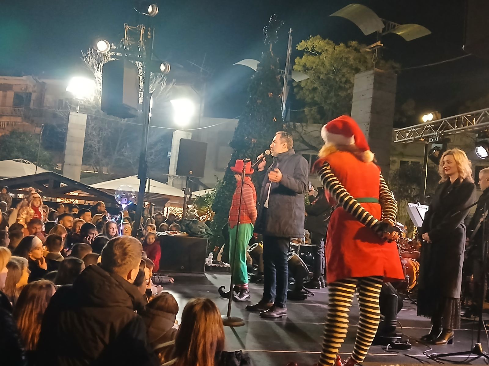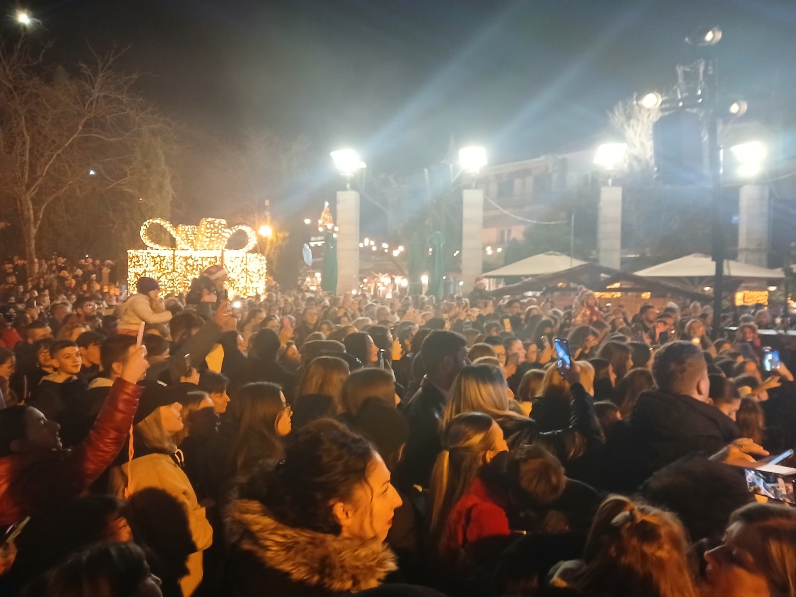 Στις 19:00, μέσα σε χειροκροτήματα και ενθουσιασμό, το Χριστουγεννιάτικο Δέντρο φωτίστηκε, πλημμυρίζοντας την Κεντρική Πλατεία με φως και χρώμα. Αμέσως μετά, ο Γιώργος Λιβάνης ανέβηκε στη σκηνή και ξεσήκωσε το κοινό με τις επιτυχίες του, προσφέροντας μια δυνατή συναυλία γεμάτη ενέργεια, τραγούδι και κέφι.