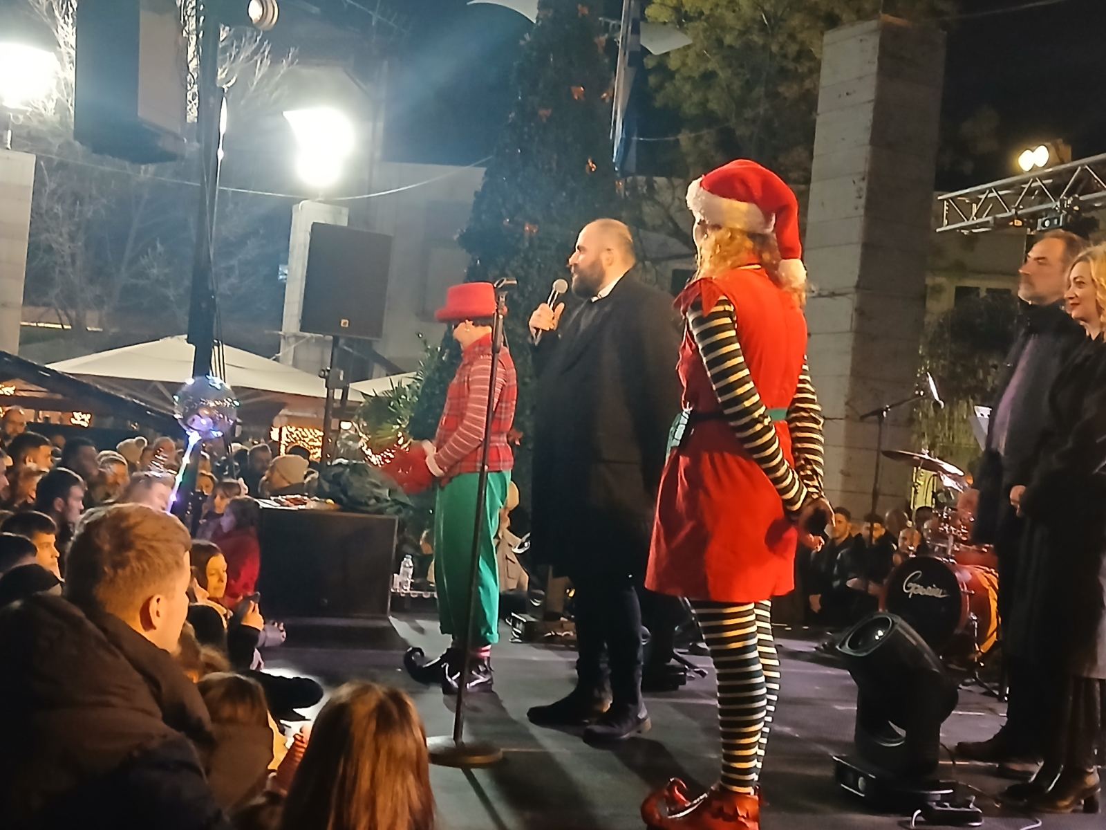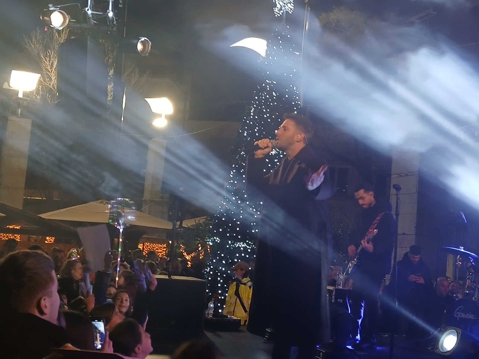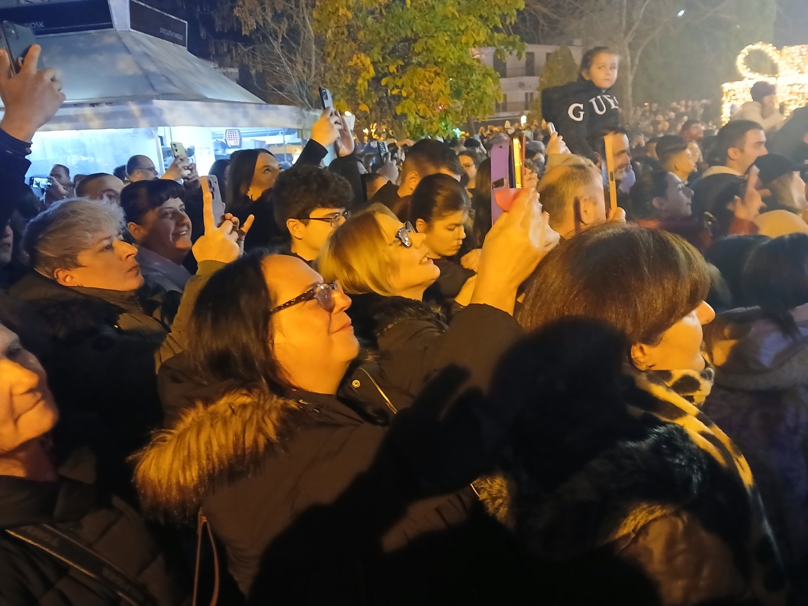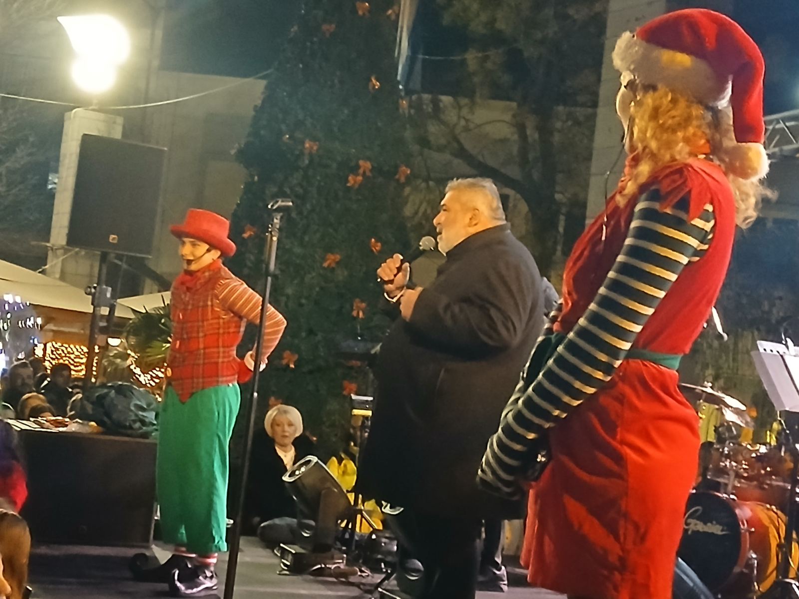 Στις 19:00, μέσα σε χειροκροτήματα και ενθουσιασμό, το Χριστουγεννιάτικο Δέντρο φωτίστηκε, πλημμυρίζοντας την Κεντρική Πλατεία με φως και χρώμα. Αμέσως μετά, ο Γιώργος Λιβάνης ανέβηκε στη σκηνή και ξεσήκωσε το κοινό με τις επιτυχίες του, προσφέροντας μια δυνατή συναυλία γεμάτη ενέργεια, τραγούδι και κέφι.