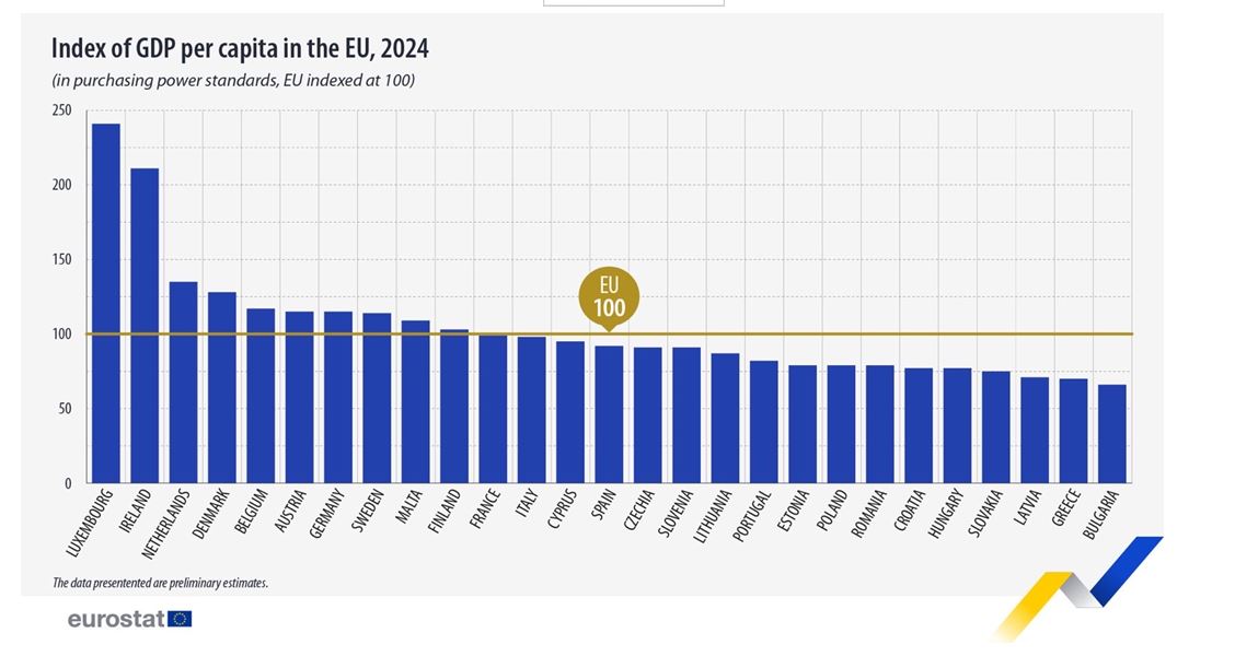 – Το μέσο εισόδημα στην Ελλάδα (κατά κεφαλήν ΑΕΠ εκπεφρασμένο σε μονάδες αγοραστικής δύναμης) βρίσκεται στην προτελευταία θέση στην ΕΕ των 27. Ο δείκτης PPS θεωρείται διεθνώς ο πιο αξιόπιστος για τη σύγκριση των χωρών και ταυτόχρονα αναδεικνύει το τεράστιο Νο1 πρόβλημα, το κόστος ζωής, το οποίο εάν δεν το ελέγξουμε, τότε το μέλλον καθίσταται αβέβαιο και η διαρκής λιτότητα δεδομένη.