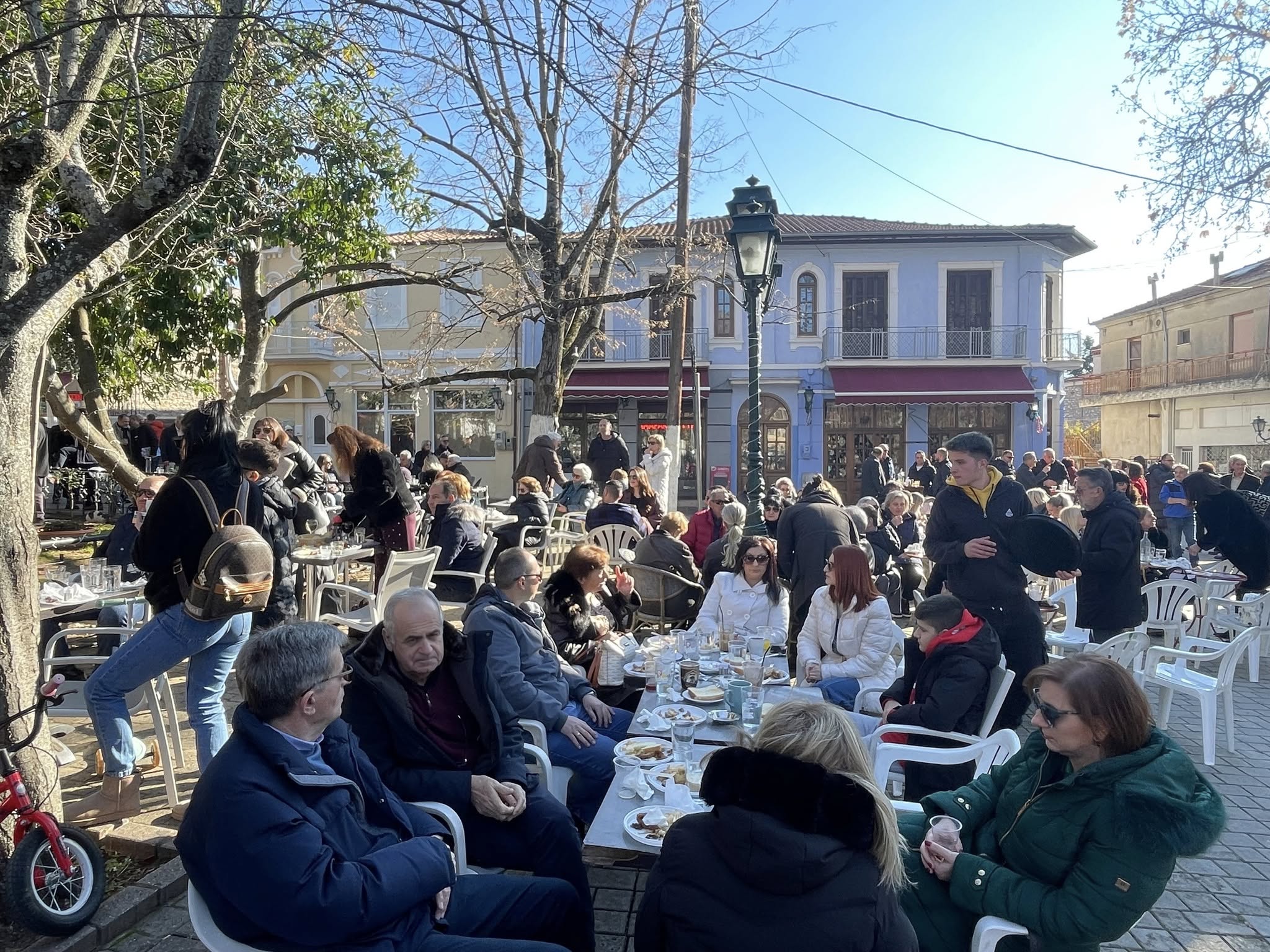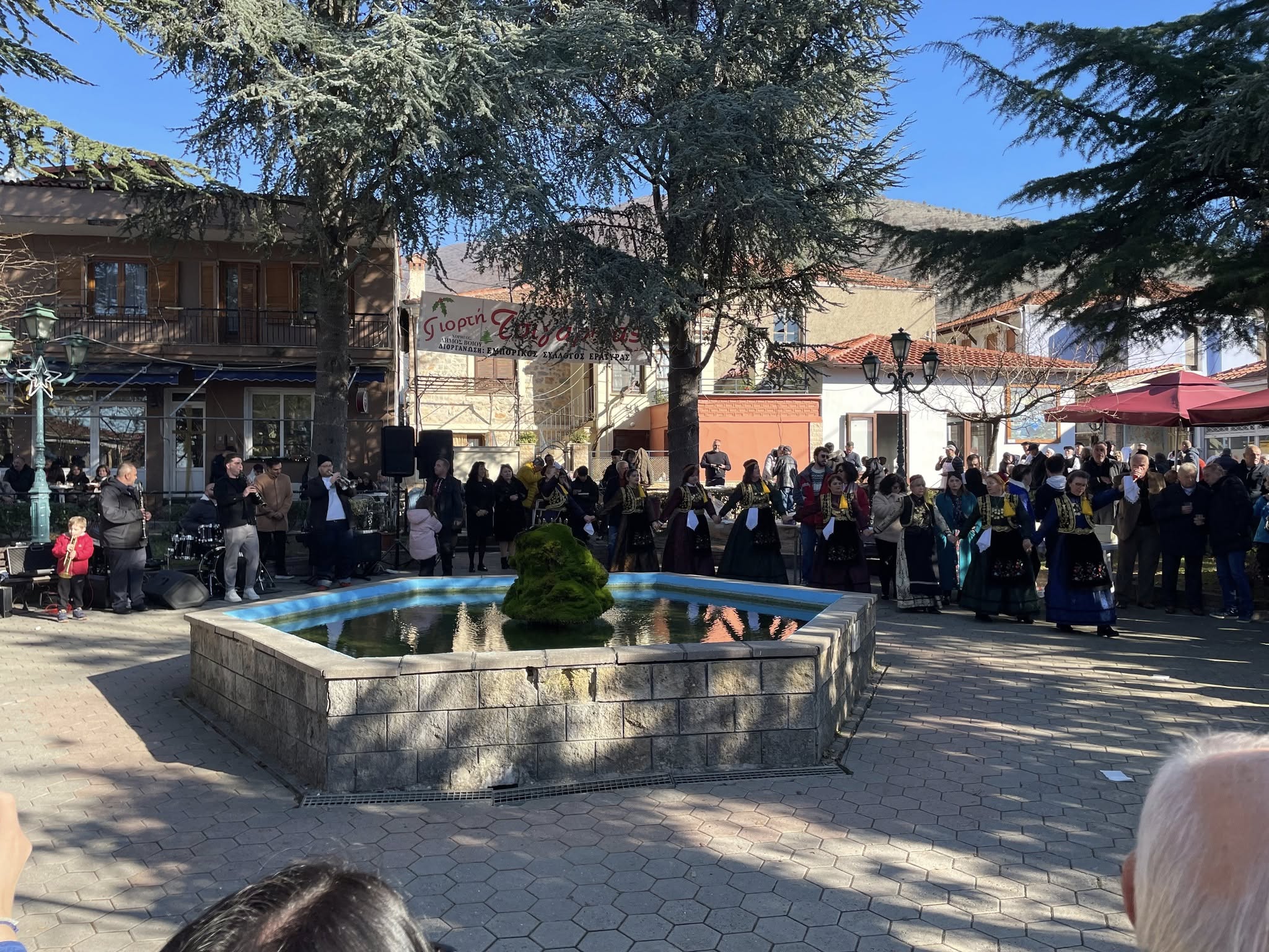 Οι παρευρισκόμενοι απόλαυσαν καλό κρασί και άφθονες τσιγαρίδες, ενώ το γλέντι κράτησε αμείωτο με τη συνοδεία της δημοτικής ορχήστρας του Δημήτρη Χατζή, που ξεσήκωσε τον κόσμο με παραδοσιακούς ρυθμούς και χορό.