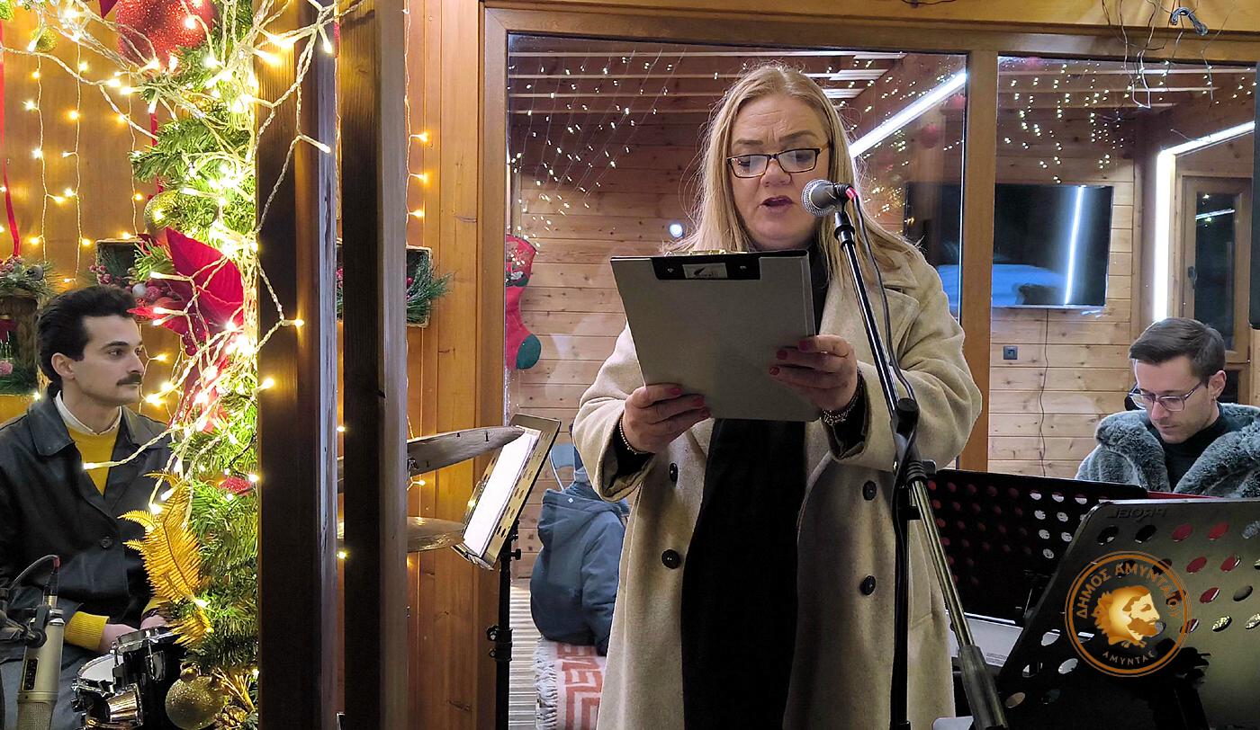 Χαιρετισμό απηύθυνε ο Πρόεδρος της Ξινό Νερό Μονομετοχικής Α.Ε. Ο.Τ.Α., Χρήστος Θωμαΐδης, ενώ αποσπάσματα από το βιβλίο του Θανάση Τραϊανού, που πρόκειται να κυκλοφορήσει τις προσεχείς εβδομάδες, διάβασε η εκπρόσωπος της Στέγης Γραμμάτων και Τεχνών Αμυνταίου, Πασχαλιά Χατζηκωνσταντίνου.