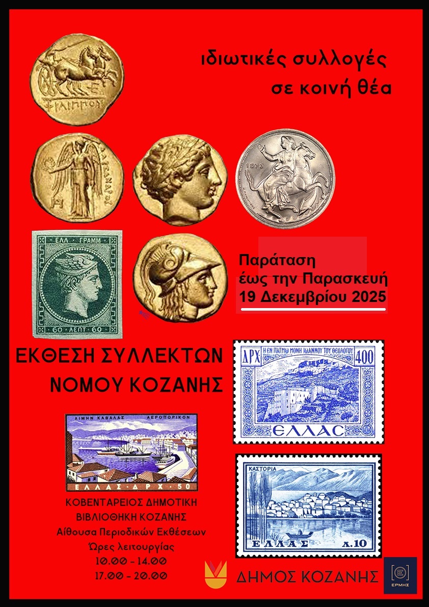 Λόγω του έντονου ενδιαφέροντος από πλευράς του κοινού, παρατείνεται έως και την Παρασκευή 19 Δεκεμβρίου 2025, η λειτουργία της Έκθεσης Συλλεκτών «Ιδιωτικές Συλλογές σε Κοινή Θέα», η οποία φιλοξενείται στην Κοβεντάρειο Δημοτική Βιβλιοθήκη Κοζάνης, με ελεύθερη είσοδο.