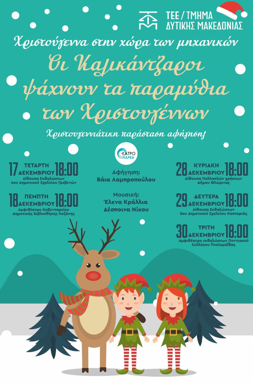 Μια ζεστή, γιορτινή αφήγηση με παραμύθια, μουσική και χριστουγεννιάτικη φαντασία, ειδικά σχεδιασμένη για παιδιά, στο πλαίσιο των χριστουγεννιάτικων δράσεων του ΤΕΕ/Τμήματος Δυτικής Μακεδονίας.