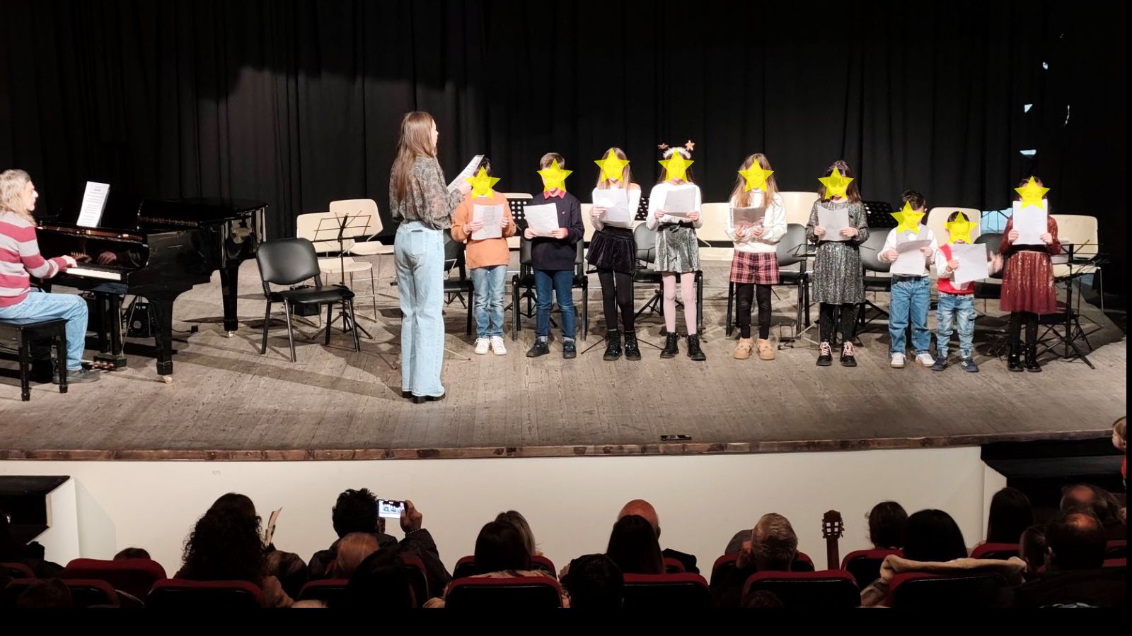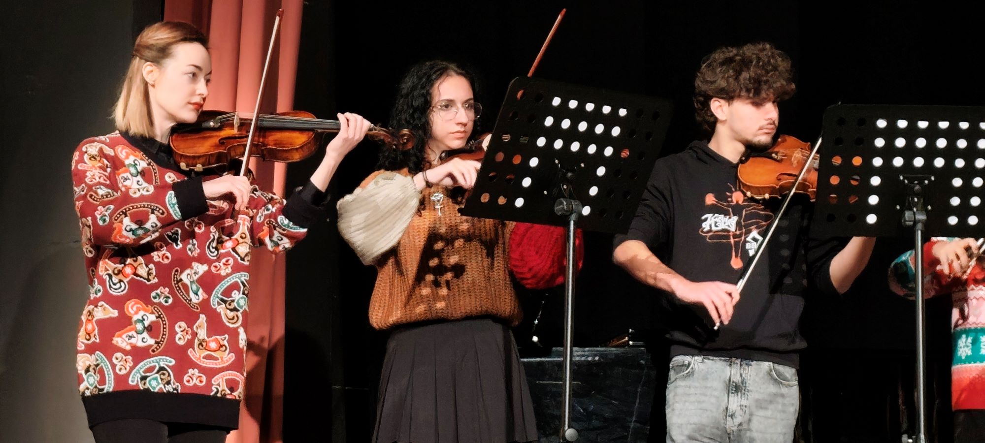 Μουσικά σύνολα βιολιού, τμήματα προπαιδείας, παιδική χορωδία και φωνητικά σύνολα παρουσίασαν ένα πλούσιο πρόγραμμα εμπνευσμένο από το πνεύμα των Χριστουγέννων, ενώ την παράσταση έκλεψαν τα ξωτικά και ο Άγιος Βασίλης που μοίρασε δώρα και χαμόγελα.