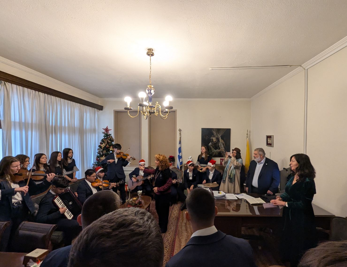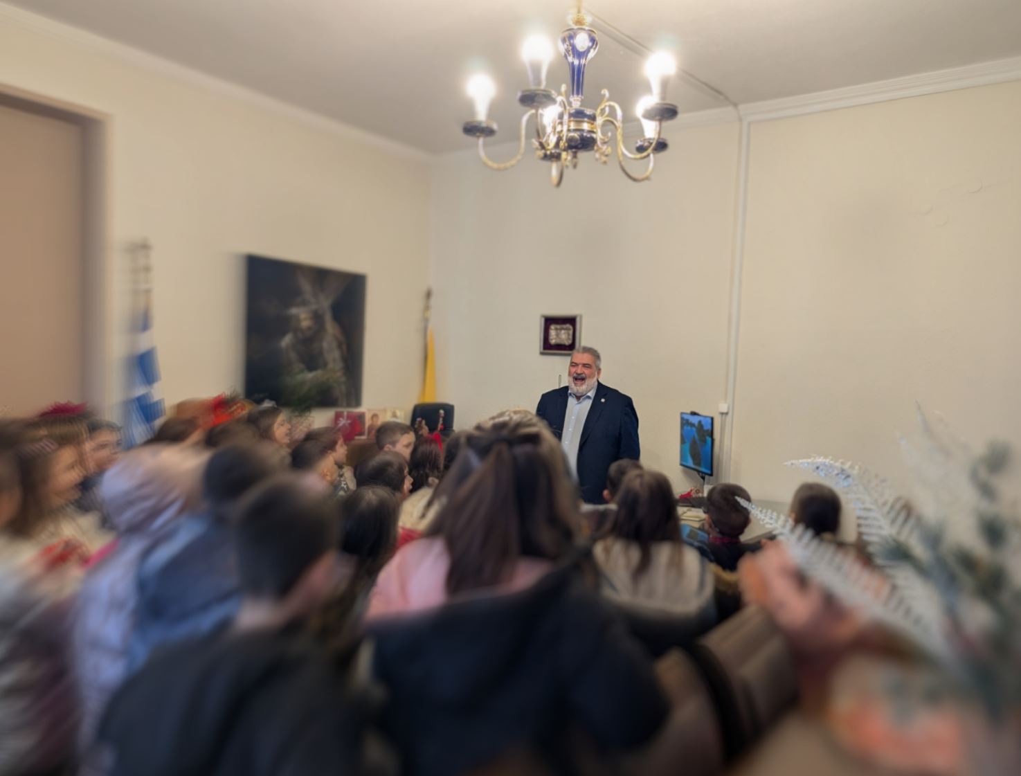 Ο Δήμαρχος ευχαρίστησε θερμά τους μαθητές και τους εκπαιδευτικούς τους για την επίσκεψη τους και την όμορφη παρουσία τους, ανταλλάσσοντας με όλους χριστουγεννιάτικες ευχές και κεράσματα.