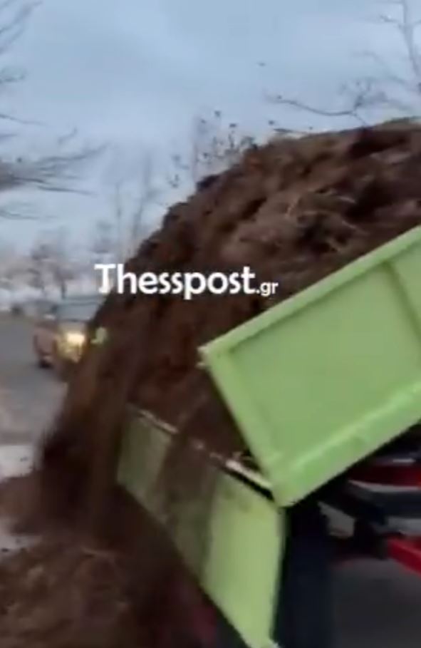 Όπως φαίνεται στο βίντεο του ThessPost.gr, έριξαν ένα «φορτηγό» βάρους τεσσάρων τόνων κοπριάς φυτικών υπολειμμάτων και σκουπιδιών μπροστά από το κτίριο της Περιφέρειας, ως ένδειξη διαμαρτυρίας.