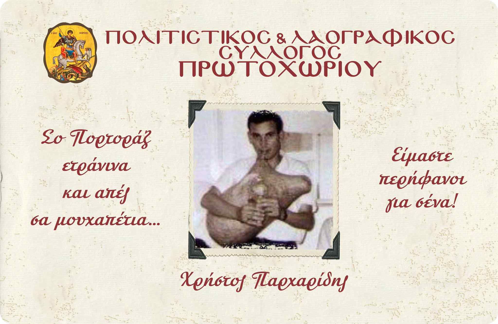 Ο Πολιτιστικός Σύλλογος Πρωτοχωρίου αποχαιρετά σήμερα με βαθιά συγκίνηση τον Χρήστο Παρχαρίδη Τσαφέτα.