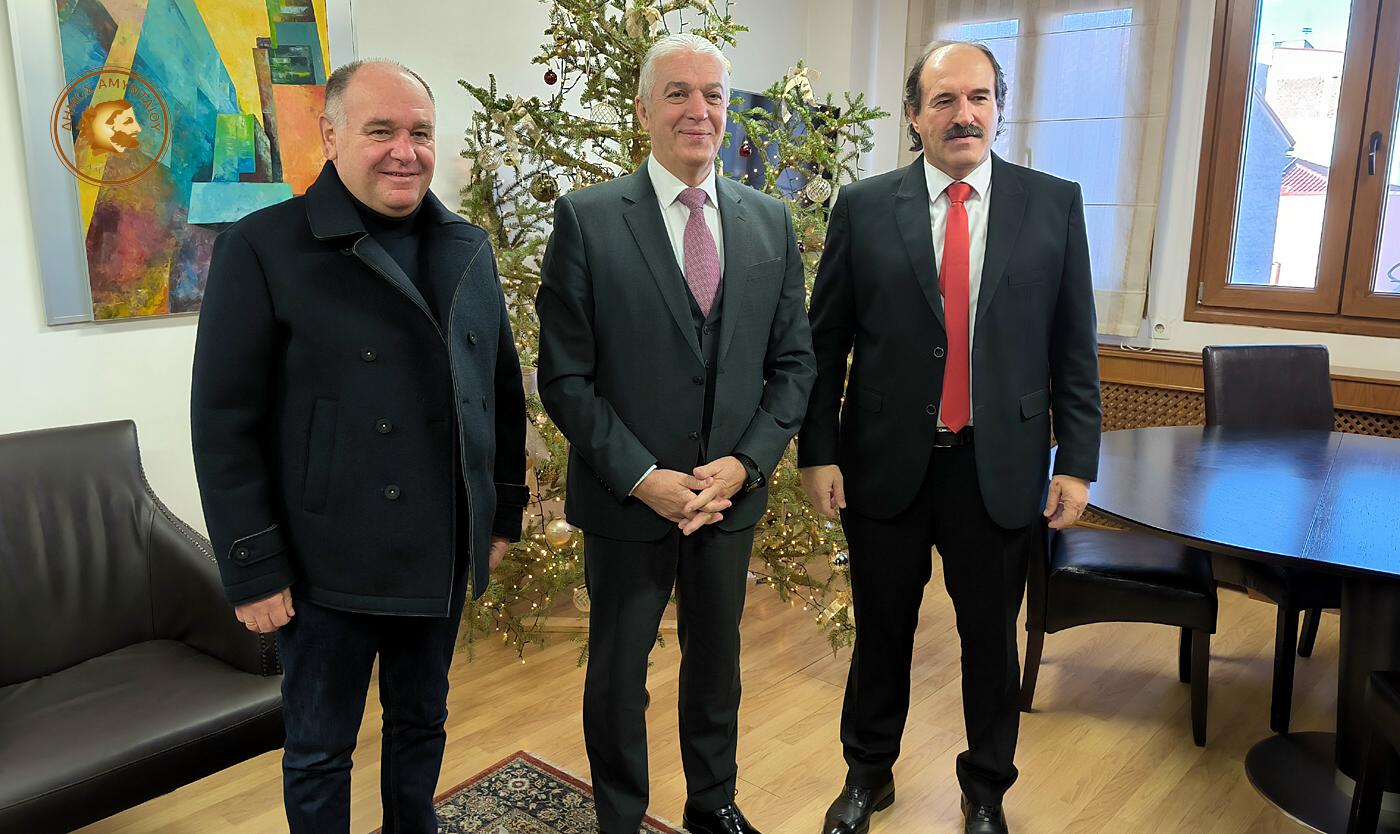 Αρχικά, ο Δήμαρχος Αμυνταίου υποδέχτηκε στο γραφείο του τον Βουλευτή και τον Αντιπεριφερειάρχη Φλώρινας. Κατά τη διάρκεια της συνάντησης, αντάλλαξαν θερμές ευχές για μια δημιουργική και παραγωγική χρονιά, με υγεία, πρόοδο και ευημερία για την τοπική κοινωνία.