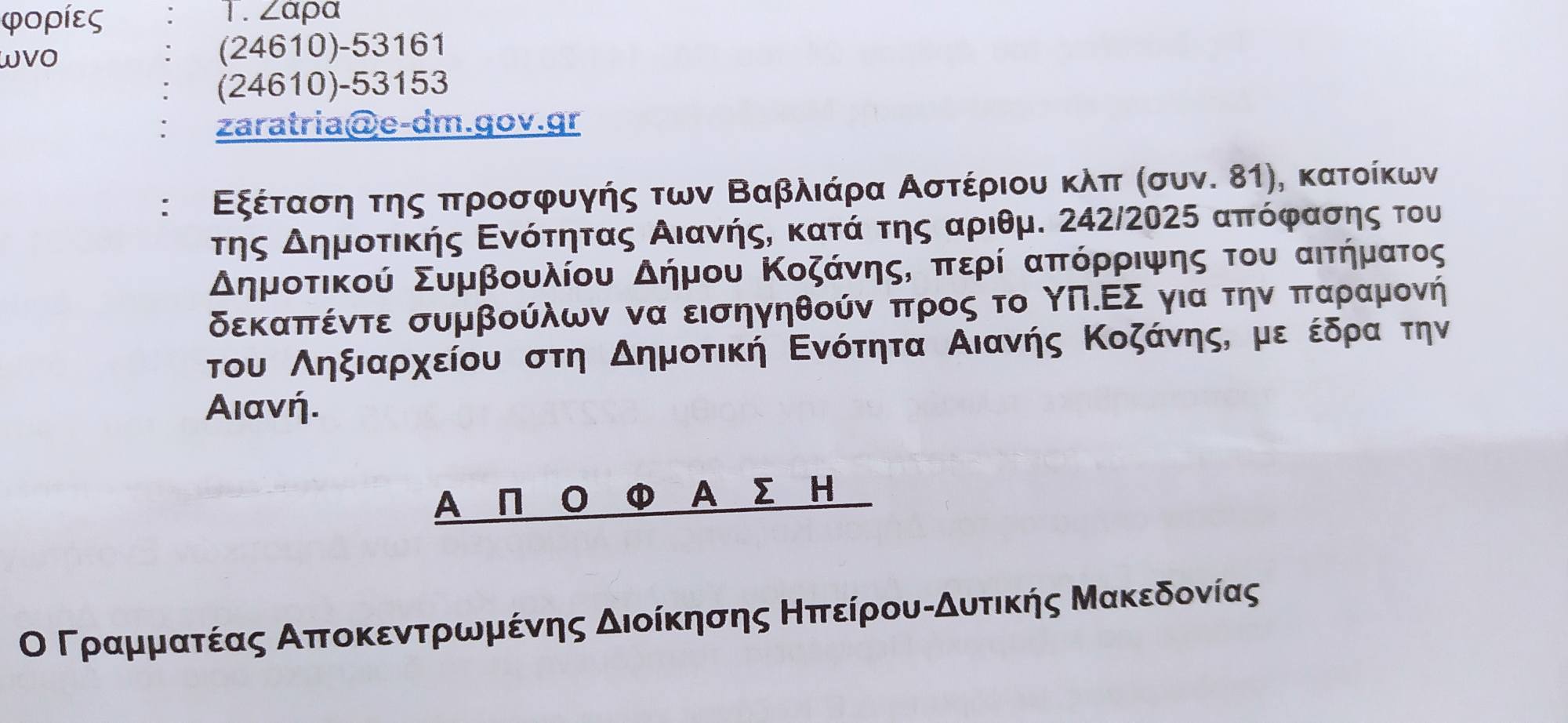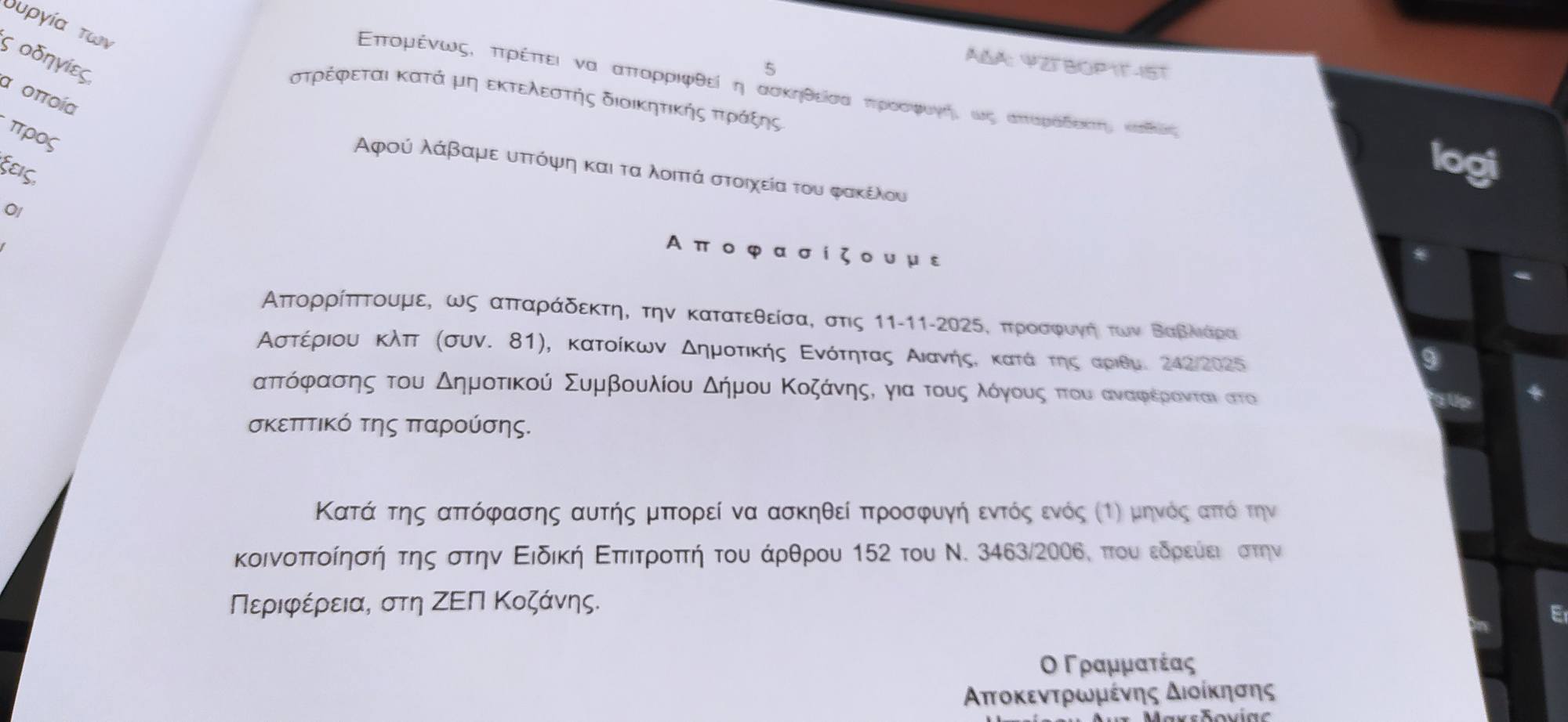 Η πρόσφατη απόφαση της Αποκεντρωμένης Διοίκησης (αρ. πρ. 59153/23-12-2025) να πετάξει στο καλάθι των αχρήστων την προσφυγή μας για το Ληξιαρχείο Αιανής, βαφτίζοντας την απόφαση του Δημοτικού Συμβουλίου ως «μη εκτελεστή», προκαλεί το δημόσιο αίσθημα. Δεν πρόκειται απλώς για μια νομική διαφωνία, αλλά για την πλήρη αποδόμηση της έννοιας της τοπικής αυτοδιοίκησης. Ποιος διοικεί τελικά αυτόν τον Δήμο;