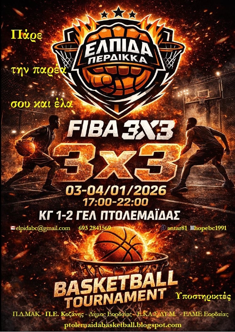 Σάββατο 03/01/2026 στο ΚΓ του 1-2ου ΓΕΛ, 18 ομάδες από τις 16:00 μέχρι τις 22:30 παίζουν και διεκδικούν την 1η θέση και την εμπειρία της συμμετοχής σε ένα πρωτάθλημα 3on3