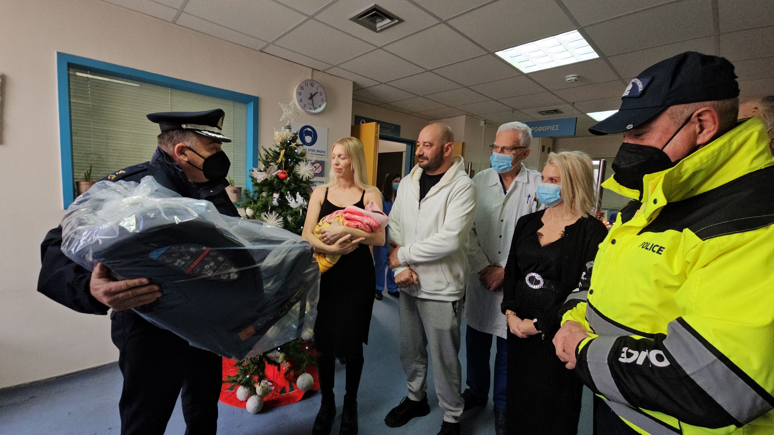 Τo Τμήμα Τροχαίας Κοζάνης της Διεύθυνσης Αστυνομίας Κοζάνης, δώρισε σήμερα (4-1-2025) το μεσημέρι ένα παιδικό κάθισμα αυτοκινήτου στο πρώτο παιδί που γεννήθηκε το έτος 2026 στην πόλη της Κοζάνης, με στόχο την ευαισθητοποίηση και την ενημέρωση του κοινού, σε θέματα οδικής ασφάλειας και της πρόληψης τροχαίων ατυχημάτων.