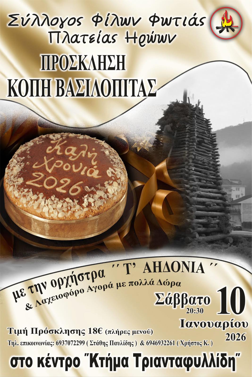 Φλώρινα: Κοπή βασιλόπιτας του συλλόγου Φίλων φωτιάς πλατείας Ηρώων, το Σάββατο 10 Ιανουαρίου