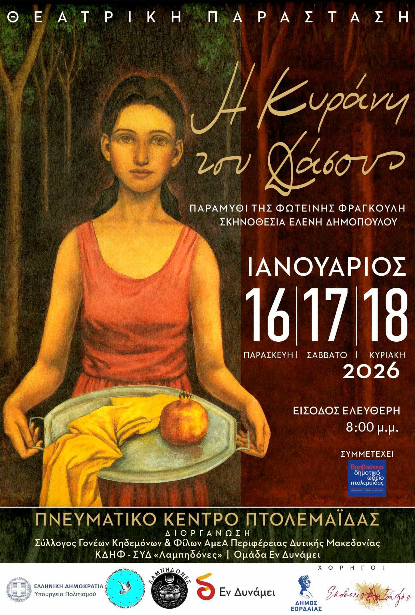 Το πολιτιστικό, συμπεριληπτικό πρόγραμμα που κατέθεσε ο Σύλλογος το 2024-2025 στην πρόσκληση του ΥΠΟΥΡΓΕΙΟΥ ΠΟΛΙΤΙΣΜΟΥ για την «καθολική προσβασιμότητα των ΑμεΑ στον Πολιτισμό» και εγκρίθηκε η επιχορήγησή του, αφορά στο παραμύθι της ΦΩΤΕΙΝΗΣ ΦΡΑΓΚΟΥΛΗ «Η ΚΥΡΑΝΗ ΤΟΥ ΔΑΣΟΥΣ» και στην παράστασή του επί σκηνής.