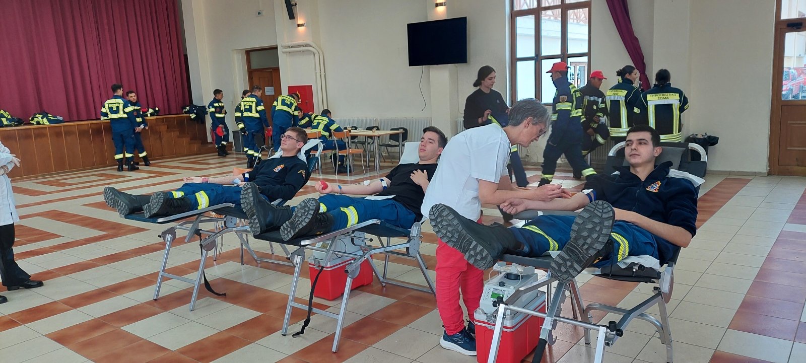 Στη συνέχεια σε συνεργασία με το τμήμα αιμοδοσίας του Γ.Ν. Καστοριάς πραγματοποιήθηκε εθελοντική αιμοδοσία. Η Διοίκηση της Σχολής Πυροσβεστών ευχαριστεί όλους τους σπουδαστές οι οποίοι συμμετείχαν στην εθελοντική αιμοδοσία και πρόσφεραν 30 μονάδες αίματος.