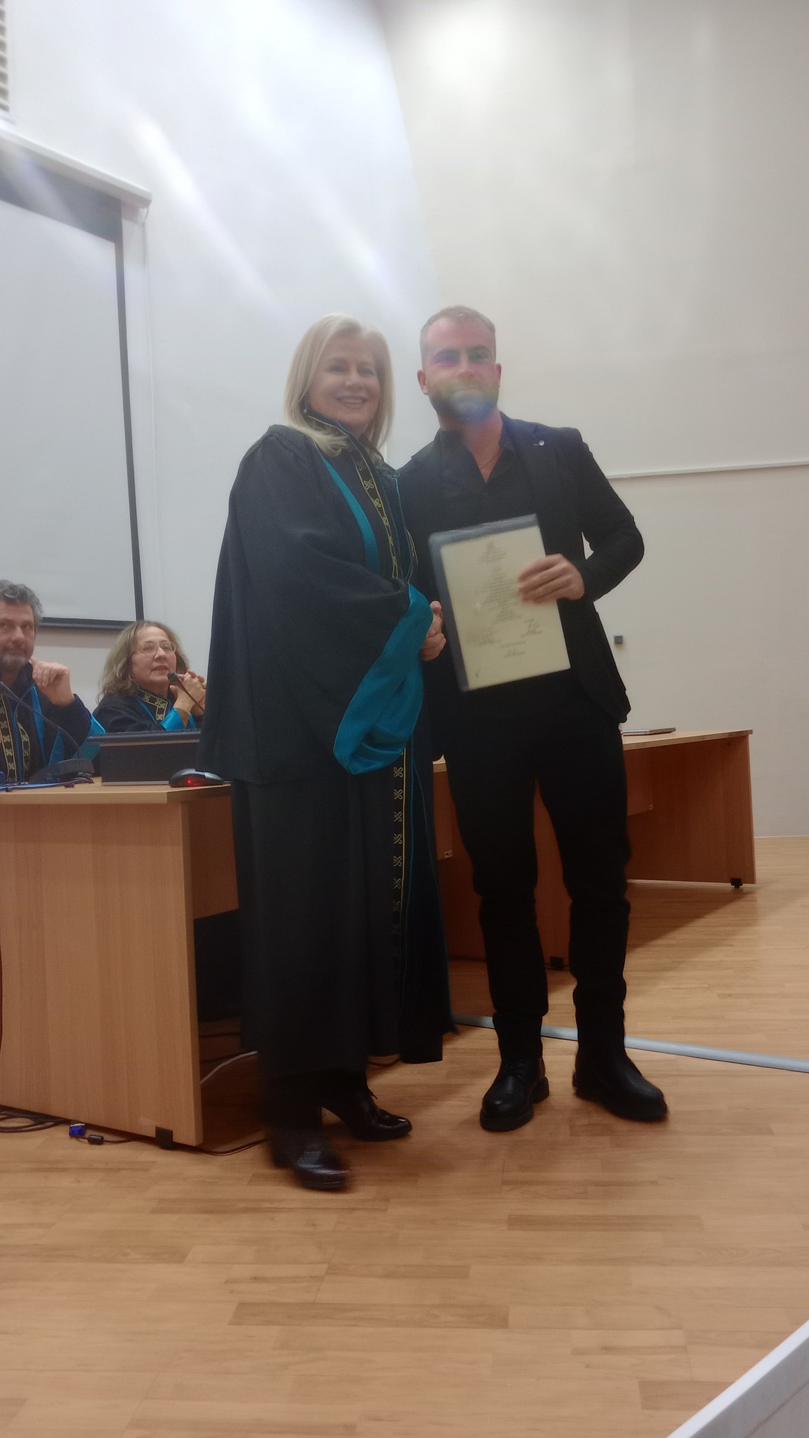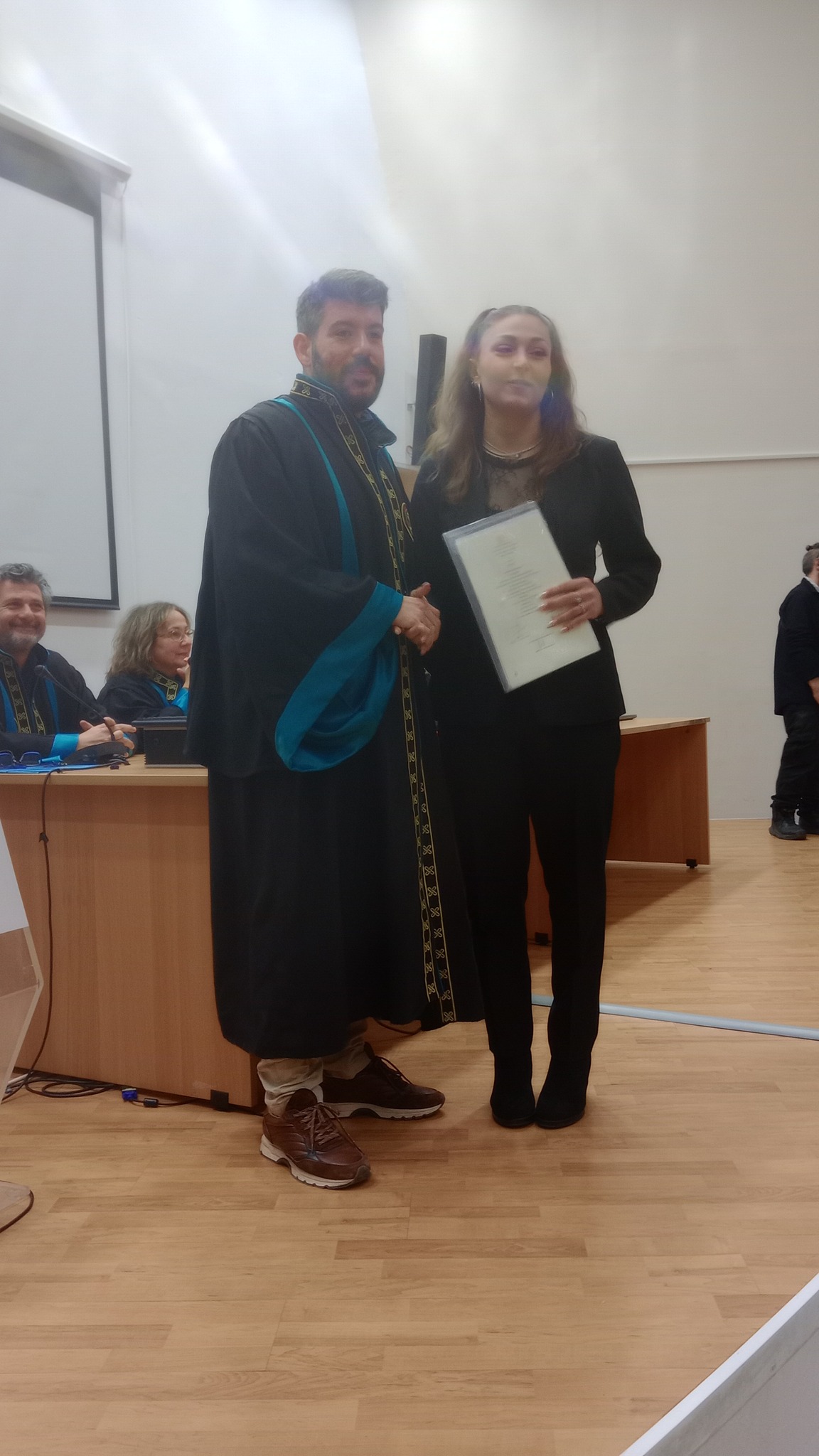 Ακολούθησε η απονομή της χρηματικής Υποτροφίας «Κωνσταντίνος Άγιος/ΔΕΛΤΑ» την οποία καθιέρωσε η εταιρεία ΔΕΛΤΑ στη μνήμη του αδικοχαμένου φοιτητή μας Κωνσταντίου Άγιου στο πρωτεύσαντα σε βαθμολογία απόφοιτο του Τμήματος Μπαμπούλα Χαράλαμπο. Την απονομή έκανε η κ. Φωτεινή Βέτσικα, στέλεχος της εταιρείας, μαζί με τους συνεργάτες της και παρουσία των γονέων και συγγενών του Κωνσταντίνου Άγιου.