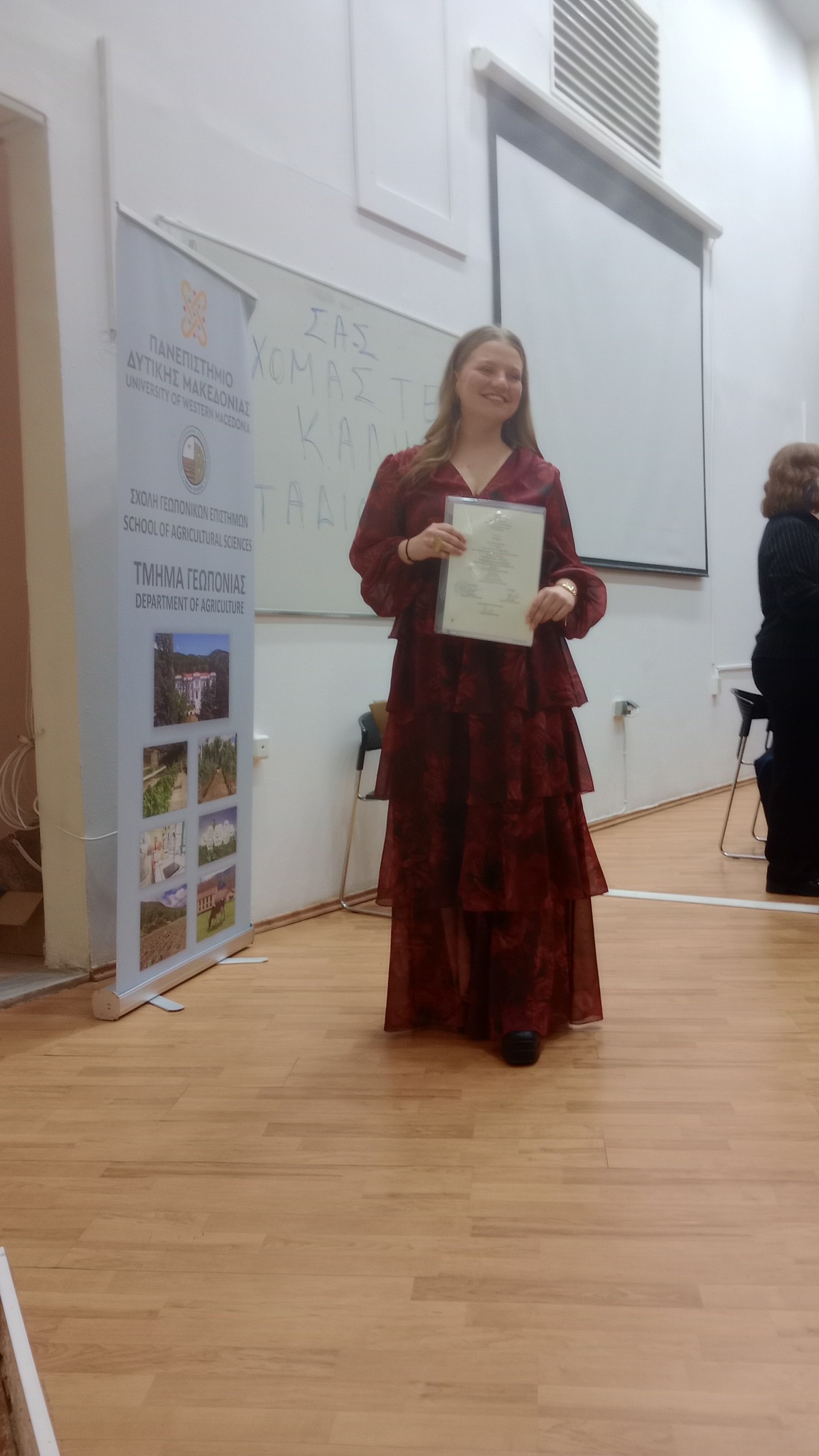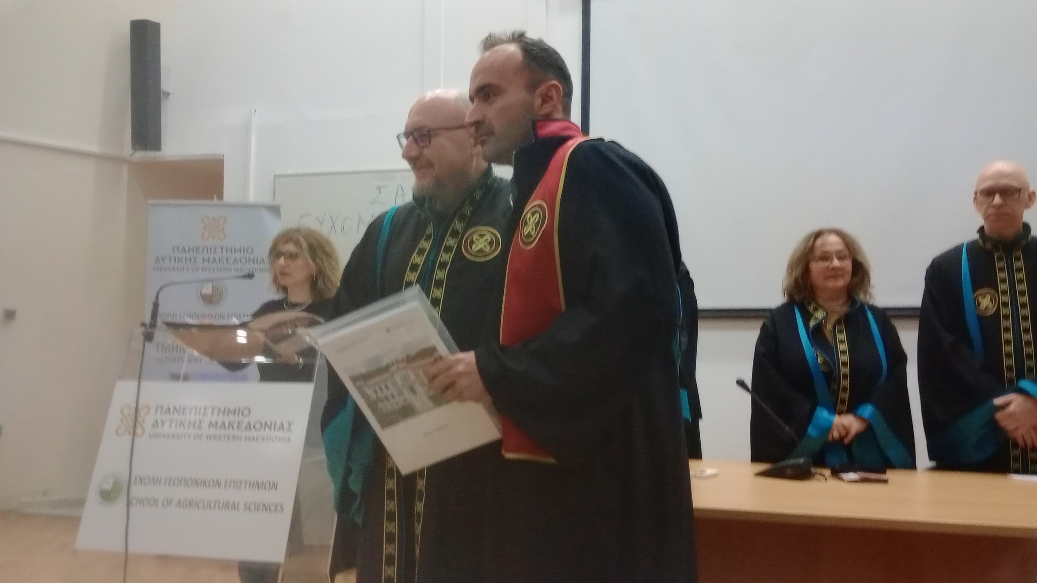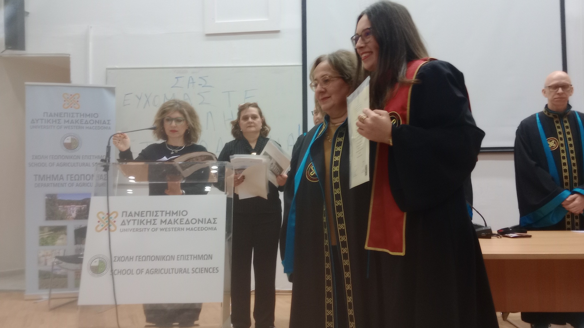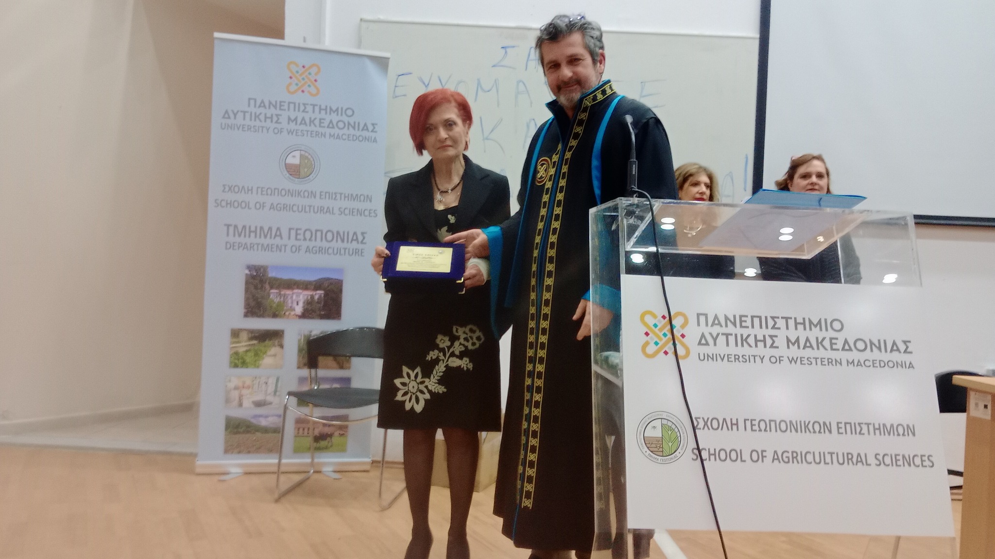Η Σχολή επίσης, απένειμε στην αφυπηρετήσαντα Καθηγήτρια του τμήματος, κ. Θεανώ Λαζαρίδου, τιμητική πλακέτα για την πολύχρονη προσφορά της στο τμήμα Γεωπονίας.