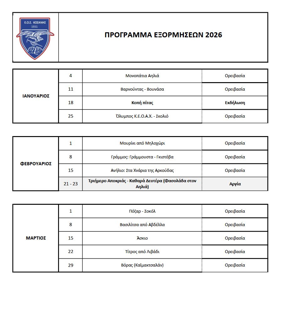 Ετήσιος προγραμματισμός δράσεων για το 2026 ΕΟΣ Κοζάνης.