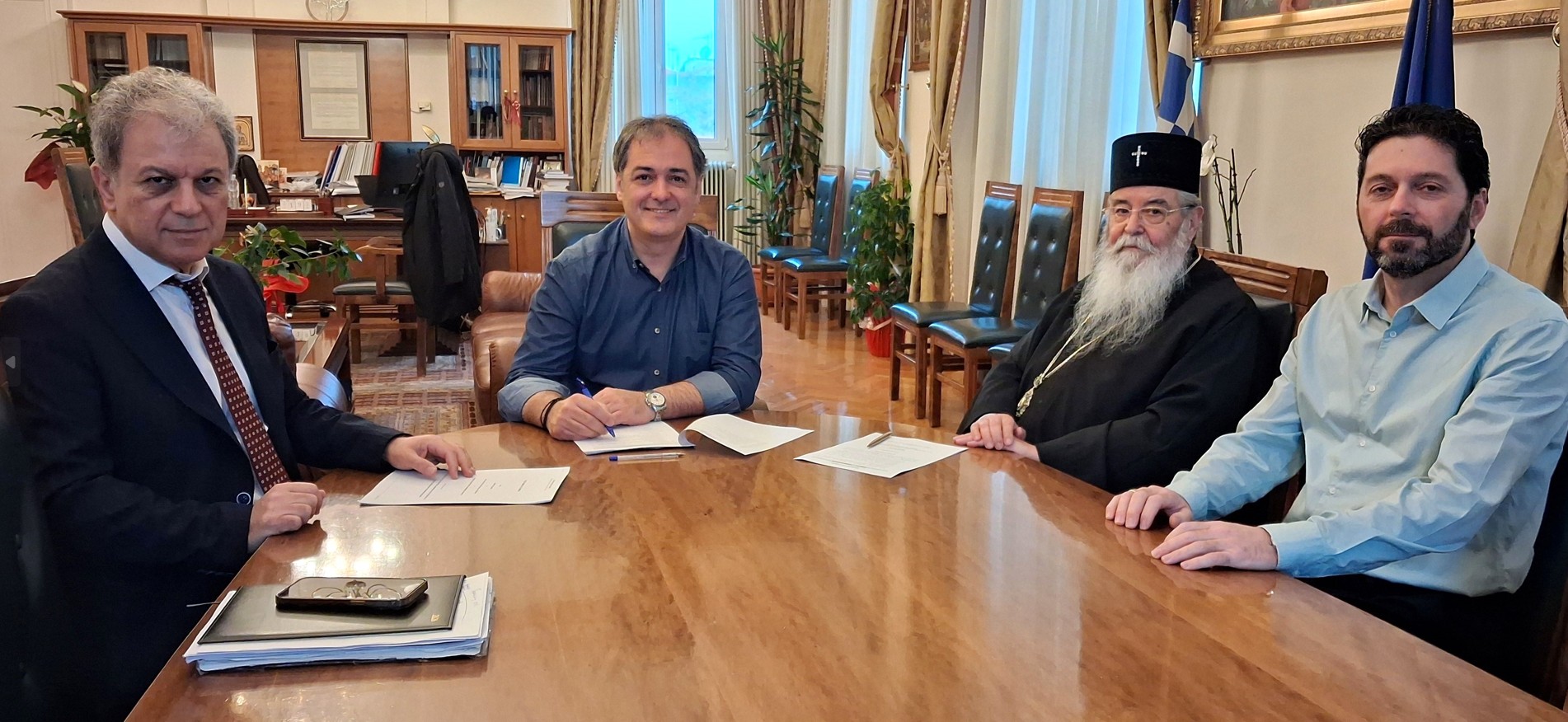 Η προγραμματική σύμβαση με τίτλο «ΚΑΤΑΣΚΕΥΗ ΔΙΚΤΥΟΥ ΑΠΟΧΕΤΕΥΣΗΣ ΑΚΑΘΑΡΤΩΝ ΓΙΑ ΤΗΝ ΕΞΥΠΗΡΕΤΗΣΗ ΤΟΥ ΤΙΑΛΕΙΟΥ ΕΚΚΛΗΣΙΑΣΤΙΚΟΥ ΓΗΡΟΚΟΜΕΙΟΥ ΚΟΖΑΝΗΣ», υπεγράφη το πρωί της Παρασκευής 23 Ιανουαρίου 2026 μεταξύ του Δημάρχου Κοζάνης Γιάννη Κοκκαλιάρη και του Σεβασμιωτάτου Μητροπολίτη Σερβίων & Κοζάνης κ.κ. Παύλου, παρουσία του Περιφερειάρχη Δυτικής Μακεδονίας Γιώργου Αμανατίδη και του Αντιδημάρχου Τεχνικών Έργων Κώστα Βόμβα.