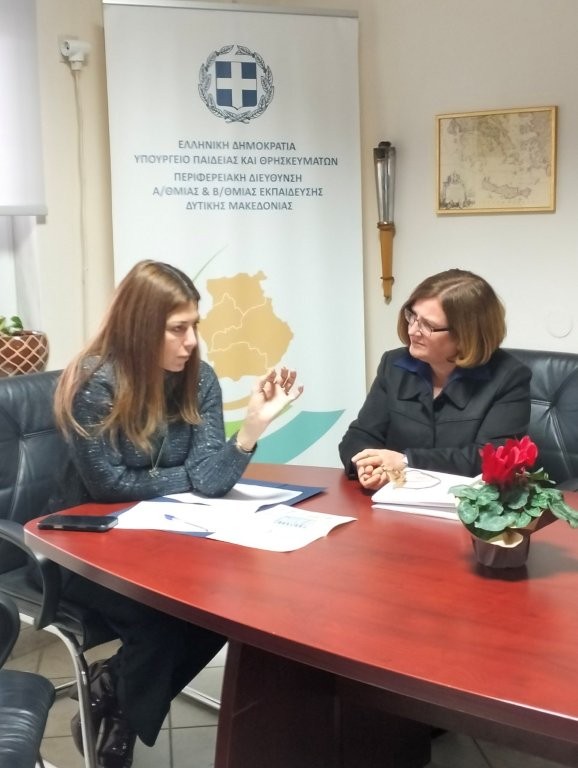 Στη συνέχεια είχε συνάντηση εργασίας με την αναπληρώτρια Περιφερειακή Διευθύντρια, τον Περιφερειακό Επόπτη Ποιότητας, Χαράλαμπο Αποστόλου και τους Διευθυντές και Διευθύντριες Εκπαίδευσης Γρεβενών, Καστοριάς, Κοζάνης και Φλώρινας, Ιωάννη Σούλιο, Σουμέλα Ατματζίδου, Αναστάσιο Ξανθόπουλο, Ευγενία Μαρνέρη, Αθανάσιο Παπαευαγγέλου, Βασιλική Βόντσα, Όλγα Μούσιου-Μυλωνά και Άννα Δογούλη, κατά την οποία συζητήθηκαν εκπαιδευτικά θέματα, μεταξύ των οποίων η στελέχωση των σχολικών μονάδων, η αξιολόγηση, η μείωση του μαθητικού δυναμικού, η ένταξη νέων σχολικών μονάδων στο πρόγραμμα «Μαριέττα Γιαννάκου» και άλλα κτηριολογικά θέματα, το πρόγραμμα των Σχολικών Γευμάτων, η εφαρμογή του προγράμματος της κολύμβησης στις Δ.Π.Ε. Κοζάνης και Φλώρινας. Συζητήθηκαν επίσης θέματα που αφορούν τις διοικητικές δομές, όπως η στελέχωση και η χρηματοδότηση των Διευθύνσεων Εκπαίδευσης καθώς και η νομική υποστήριξή τους.