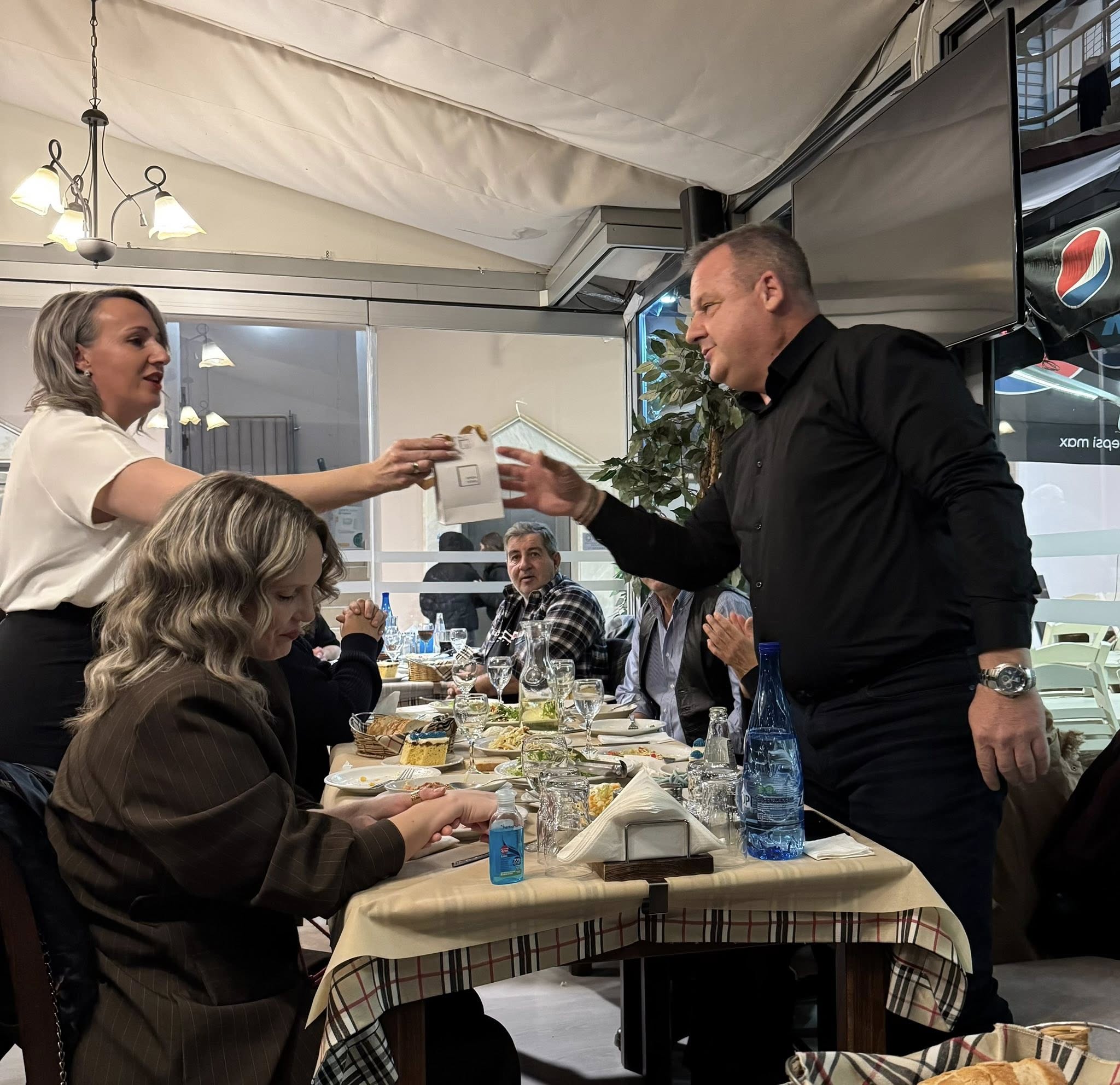 Στο πλαίσιο της εκδήλωσης, απονεμήθηκε τιμητική καρτέλα σε εργαζόμενο της εταιρίας μας, ως αναγνώριση της μακρόχρονης προσφοράς, της συνέπειας και της ουσιαστικής συμβολής του στην καθημερινή μας λειτουργία. Κατερίνα σε ευχαριστούμε για τη συνεισφορά σου, όλα αυτά τα χρόνια . Η στιγμή αυτή υπογράμμισε ότι πίσω από κάθε επιτυχία βρίσκονται οι άνθρωποι που στηρίζουν με ήθος και επαγγελματισμό το κοινό μας όραμα.